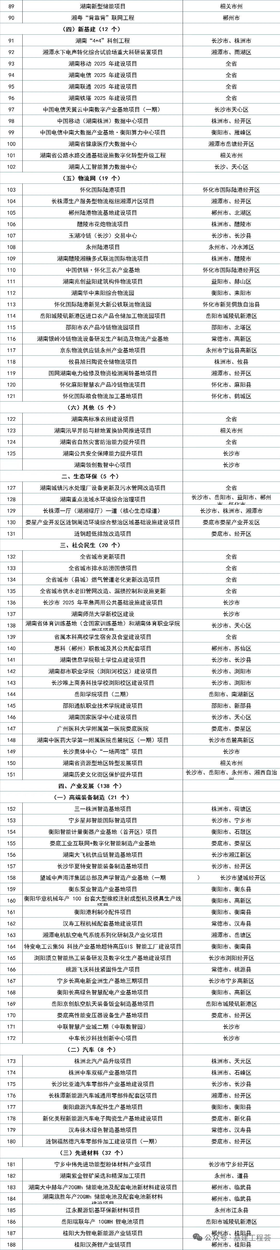 2025年湖南规划省重点建设项目289个、省重点前期工作项目51个,总投资达1.78万亿元,覆盖社会民生、基础设施等关键领域,典型项目包括G60沪昆高速娄底至洞口段扩容、G4京港澳高速岳阳至长沙段扩容、岳阳岳州2×100万千瓦燃煤发电、安化抽水蓄能电站、岳阳乙烯炼化一体化、长沙苏托垸城中村改造(一期)、湘江长沙至城陵矶一级航道等。 项目推进有坚实资金保障:2025年财政部下达湖南新增债务限额1823亿元(较2024年增101亿元,含一般债务358亿、专项债务1465亿),截至9月底已发行地方债4266亿元(新增1731亿元),剩余近100亿元专项债额度将在年内释放。2024年湖南已打下基础,当年一般公共预算收入3449亿元、获中央转移支付4953.4亿元,发行地方债4252.8亿元,完成省重点项目投资5367亿元,长沙机场改扩建、邵永高铁等项目加速推进。 今年湖南将聚焦两大建设重点:一是“十大产业项目”,如衡阳绿色盐碱产业基地、半导体湘潭智造基地;二是“十大基础设施项目”,如国家干线铁路网湖南段、长株潭都市圈通勤交通、长沙机场改扩建、重大水利工程。同时持续推进“项目大谋划、谋划大项目”行动,提升项目开工率、工程完成率和资金支付率,以政府投资带动社会投资,释放民间投资活力。
