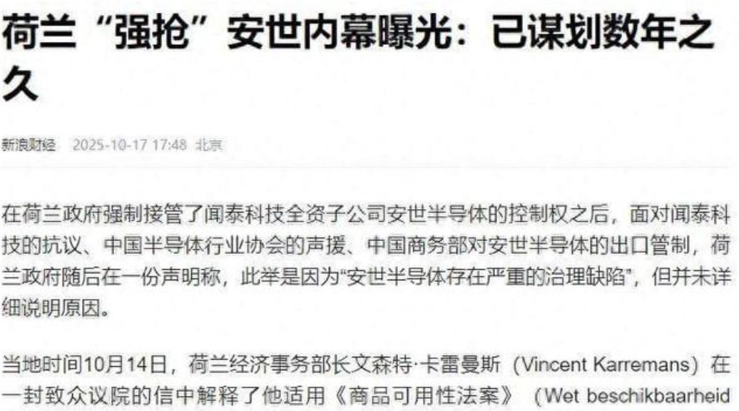 闻泰科技还是深谋远虑啊,在收购了荷兰安世半导体以后,并没有把宝全押在荷兰,而是选择把大部分产能放在了国内,这一点很高明。 大家怎么看,一起评论区唠唠! 这桩并购,当年谁都以为是“蛇吞象”,结果证明,是闻泰科技提前看透了局。 收购荷兰安世半导体,看似在买一家欧洲老牌公司,其实闻泰的真正目标,是给中国汽车芯片补链、给国内市场建供给中枢。 毕竟谁掌握产能和系统,谁就有定价权和话语权,别人还在看热闹时,闻泰已经盯上了最关键的东西——生产线。 收购刚落地,他们没搞庆功会,反倒第一时间派技术团队直奔荷兰工厂,那二十来个专家不是去参观的,而是干活的——把每台设备的参数、每道工序的流程、原材料BOM全都抄下来,做成一份“全栈镜像”。 别人还没反应过来,闻泰已经开始在国内备份一整条产线,这步棋,后来成了决定胜负的关键。 他们很快启动“双通道”布局,欧洲那边保留研发和样品业务,维持与车企的技术关系;国内这边火力全开,疯狂上马产线和新技术。 东莞、淮安、上海临港三地同时开建,第三代半导体、功率芯片齐头并进,产能飞速攀升,中国基地的出货量到2024年已经占了全球七成以上,交货周期从12周压到4周,比荷兰本部还高效。 表面上是“协同”,实际上是把主心骨放在了国内。 更狠的是,他们连系统都提前脱钩。 闻泰在国内自己搭了ERP和薪资系统,全部数据分域管理、权限自控,2024年,华为云版系统全面上线,所有生产计划和人事发放都能独立完成。 而荷兰那边后来真动手掐系统权限、停发工资,以为能卡脖子,结果国内工厂只停了不到三个小时,备用系统启动后生产照旧,闻泰用实际行动告诉对方:这活,我们自己能干。 与此同时,供应链也在“换血”,从封测到原料,闻泰几乎把整个链条都搬回国内,封测由长电科技、通富微电接手,磁芯材料换成宁波韵升,封装用的环氧料由江苏汉拓提供,国产化率一路从三成提到八成多。 等荷兰打算用原料断供施压时,国内厂商的库存早备好,根本不慌,用网友的话说——“这就是提前准备的底气”。 可以说,闻泰的这套操作并非临时救急,而是系统性布局,他们从一开始就明白,并购不只是买股份,更要买出独立生存的能力。 而到了2025年,形势突变,荷兰政府突然以“国家安全”为由,对安世半导体动了手,冻结资产、停发工资,还暂停了中国籍高管的职务,试图重新掌控这家中国控股公司。 换作别的企业,这一下恐怕就要乱了阵脚,产线被掐、系统被锁,工人罢工都不是没可能。 可闻泰的反应让所有人傻眼——国内工厂几乎没受影响,生产线照跑,员工工资照发,原因很简单:真正的命脉,早就握在自己手里。 系统被封的那天,东莞工厂的服务器一度断开,但三小时后备用系统就无缝切换,工资系统在国内本就独立,发薪一分不差。 那边刚宣布停工,这边的车规芯片已经打包出货,比亚迪和蔚来的订单一个没延误。 荷兰原本想施压,结果发现自己根本掐不到要害,这一仗,闻泰赢得干净利落。 更妙的是反噬效应,荷兰掐住权限后,欧洲车企先慌了,宝马、大众的生产线都用着安世的芯片,断供一天就是上亿元损失。 德国汽车协会急得直接上报政府,警告再这么搞下去,2026年欧洲新能源车的产量要掉15%,没过几周,荷兰经济大臣就放软口风,主动联系闻泰,提出恢复合作。 可这回,主动权已经彻底倒了个儿。 谈判桌上,闻泰的条件简单直接:可以协同,但中国基地的研发、产能和供应链调度权必须完全自主管控,荷兰最后不得不点头。 过去“技术在欧洲、生产在中国”的格局,被闻泰硬生生改写成“研发并行、决策主导”,从此以后,欧洲那套“授权制”再也管不着国内业务。 这场博弈的胜负,最终定格在技术和布局上,闻泰的国产SiC芯片良率达到85%,比荷兰工厂还高,首批模块成功交付蔚来,性能一模一样。 这意味着,就算彻底脱钩,中国这边也能单独跑完整条产品线,反倒是荷兰那边,没了中国工厂的利润支撑,研发资金一断,进度立刻滞后。 回头看,闻泰的高明不在嘴上,而在提前落子的那几年。 别人盯着安世的技术和专利,它盯的是产业链的“生死线”,从产能布局到系统独立,从供应链国产化到技术反哺,闻泰做的是一场完整的“去依赖实验”。 而荷兰的这次“卡脖子行动”,反而成了最好的压力测试——把这套体系的韧性和独立性验证得一清二楚。 最终的结论再清楚不过:并购的胜负,从来不在“谁买了谁”,而在“谁能自己站得住”。 闻泰没赌未来的政治晴雨表,而是提前给自己备好了伞,现在别人还在应付风雨,它早已能独立撑天,这,就是中国制造的新底气。 对此,大家有什么想说的呢?欢迎在评论区踊跃留言!麻烦看官老爷们阅读后点赞关注,谢谢! (个人观点,理性观看)
