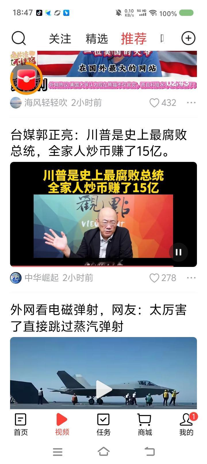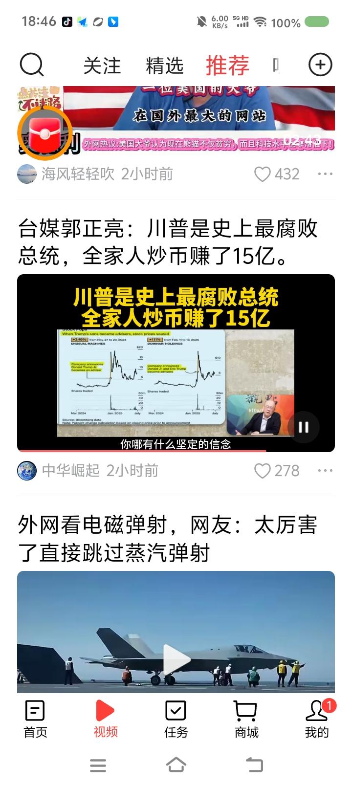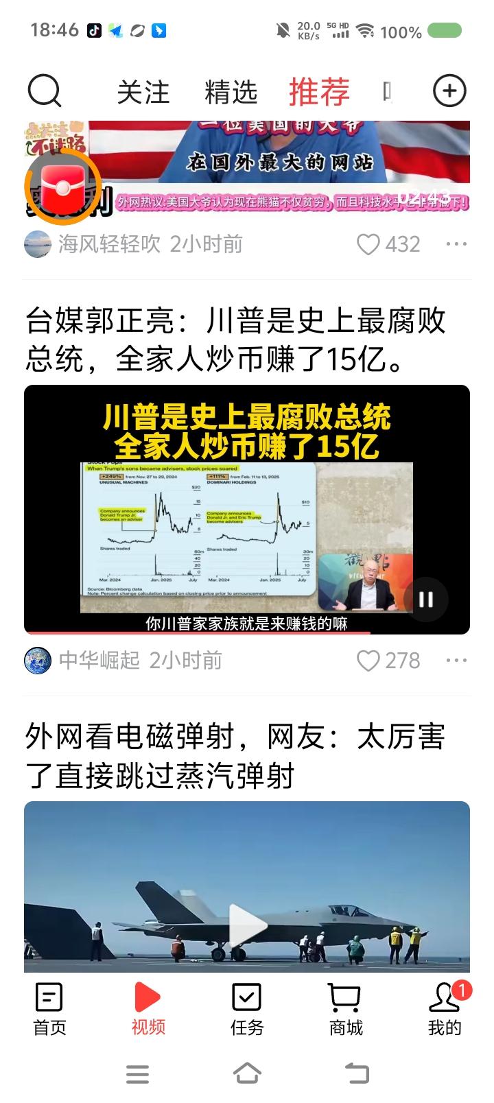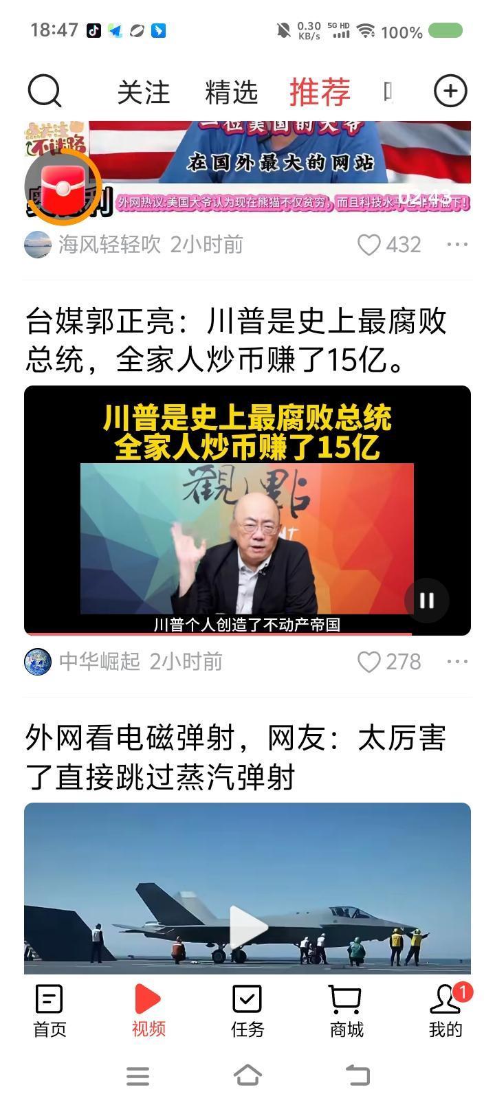 特朗普是最腐败的总统?—— 节目里,台湾省郭正亮说:“特朗普是最腐败的总统,家人炒币获利15亿美元,而且特朗普集团发行一些虚拟货币,还有操纵股市之嫌……特朗普怎么会从国家利益角度打贸易战?都是为了家族赚钱。中国已看到这一点。” 点评: 如果属实,那对特朗普来说,家族赚钱第一,当总统是手段,是副业。他上任以来一切不专业和荒唐的行为可以解释了。
