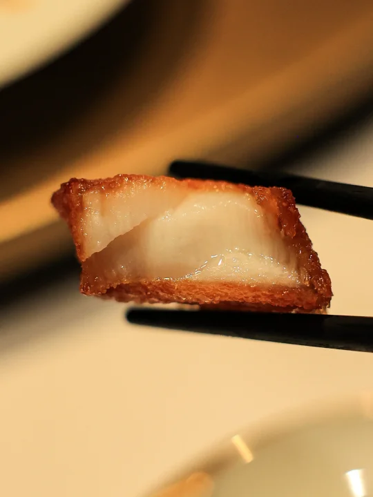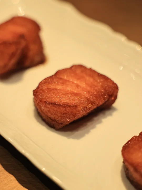 外皮酥脆,带有明显的甜味,紧接着舌尖抵到鱼肉的部分,汁水溢在每一片鱼肉之中,甜味之后是鳕鱼的浓郁滋味,一波又一波的给味蕾冲击,太好吃了!