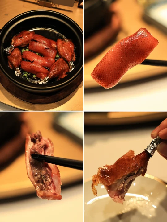 乳鸭腿会略带一些嚼劲,腌渍的咸味渗进肉之中,搭配一些饮品吃起来不会那么咸腻。鸭胸肉非常好吃,比起乳鸽来说,禽味更微妙,香气扑鼻,肉感扎实,相当好吃!