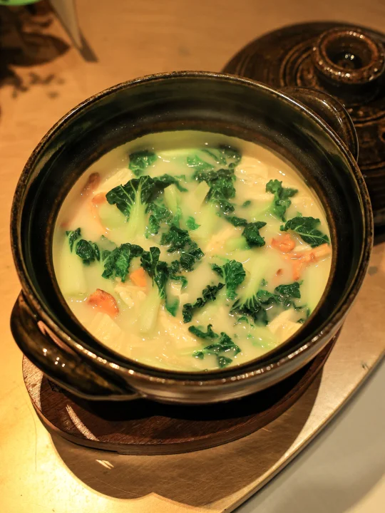 🥬鸡油菌支竹咸猪骨煲淋时蔬