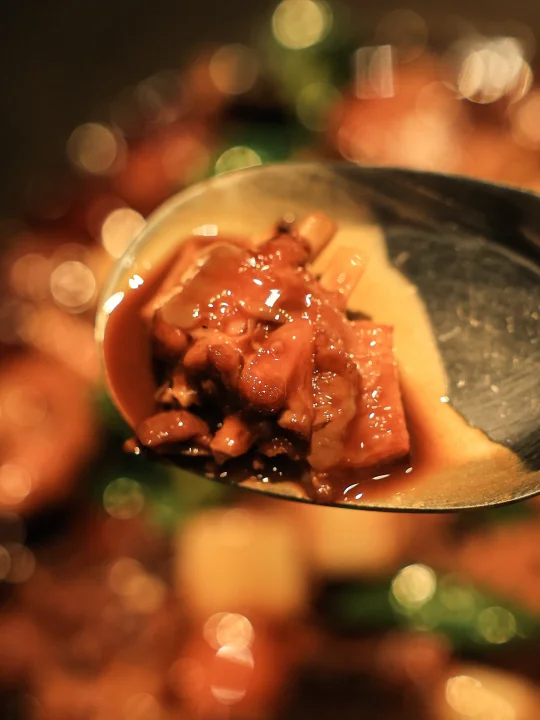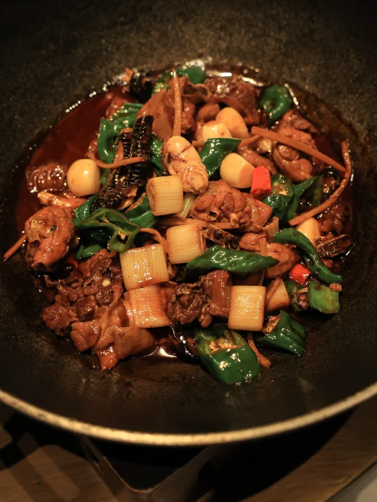 猛火宽油和青椒的组合,加上重口浓香的酱汁,真是上头的一锅炒菜。鸡的肉质非常紧实有嚼劲,且越嚼越香,泡在汤汁里的部分更是有着夸张的咸香味。