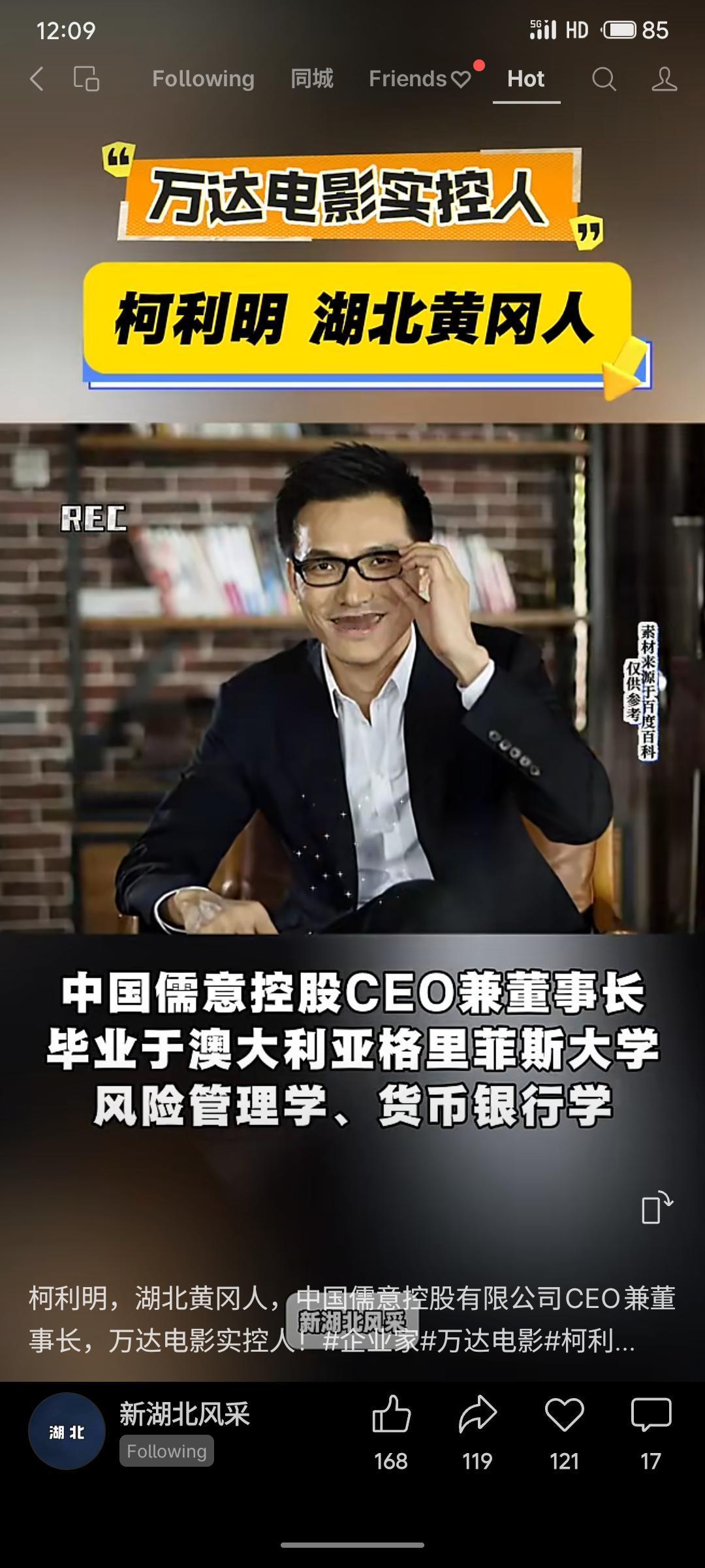 柯利明,湖北黄冈人,毕业于澳大利亚格里菲斯大学,现任中国儒意控股CEO兼董事长、万达电影实控人。其主导的《琅琊榜》《芈月传》《你好,李焕英》等影视作品屡获大奖并创下票房纪录。