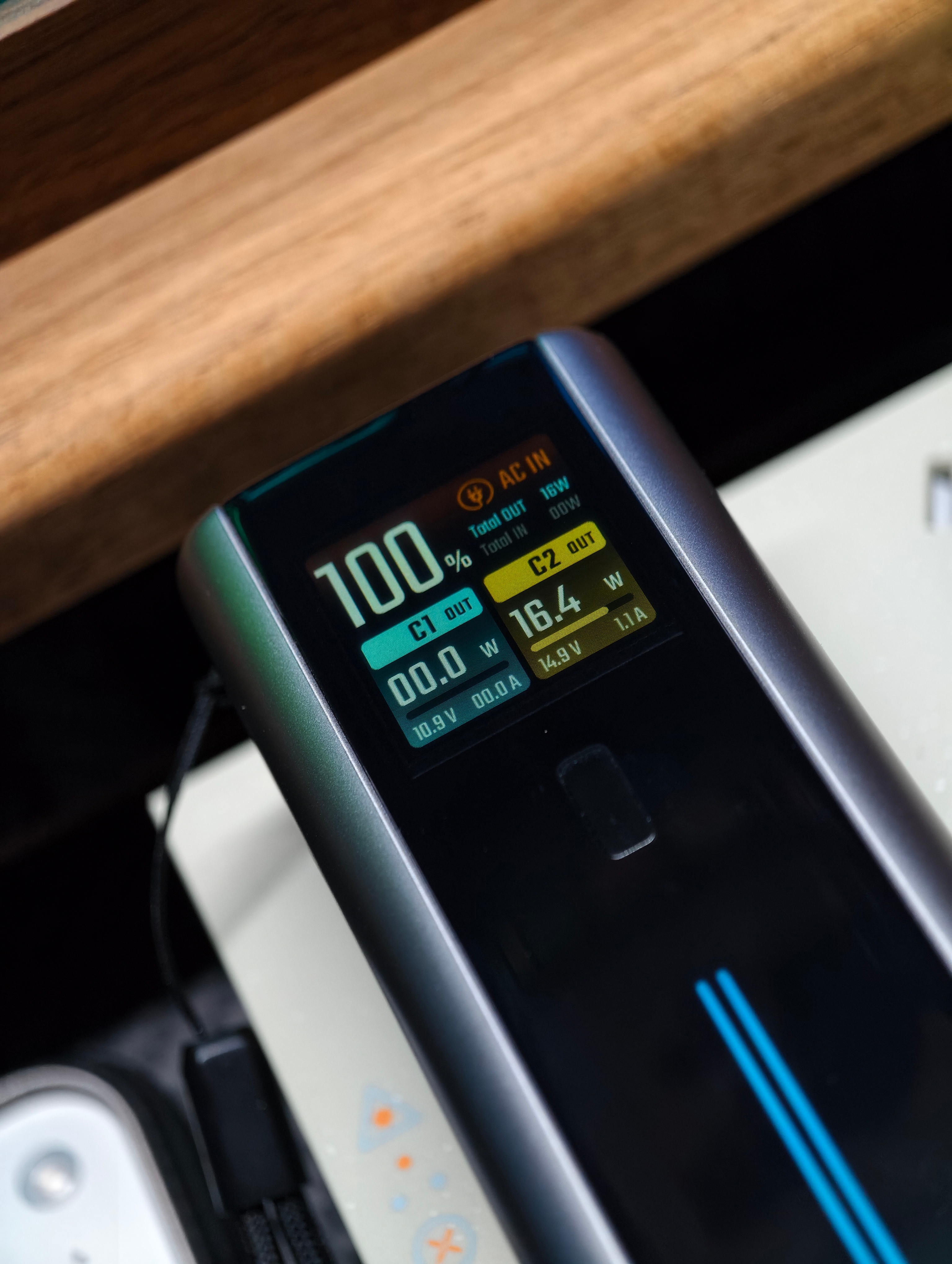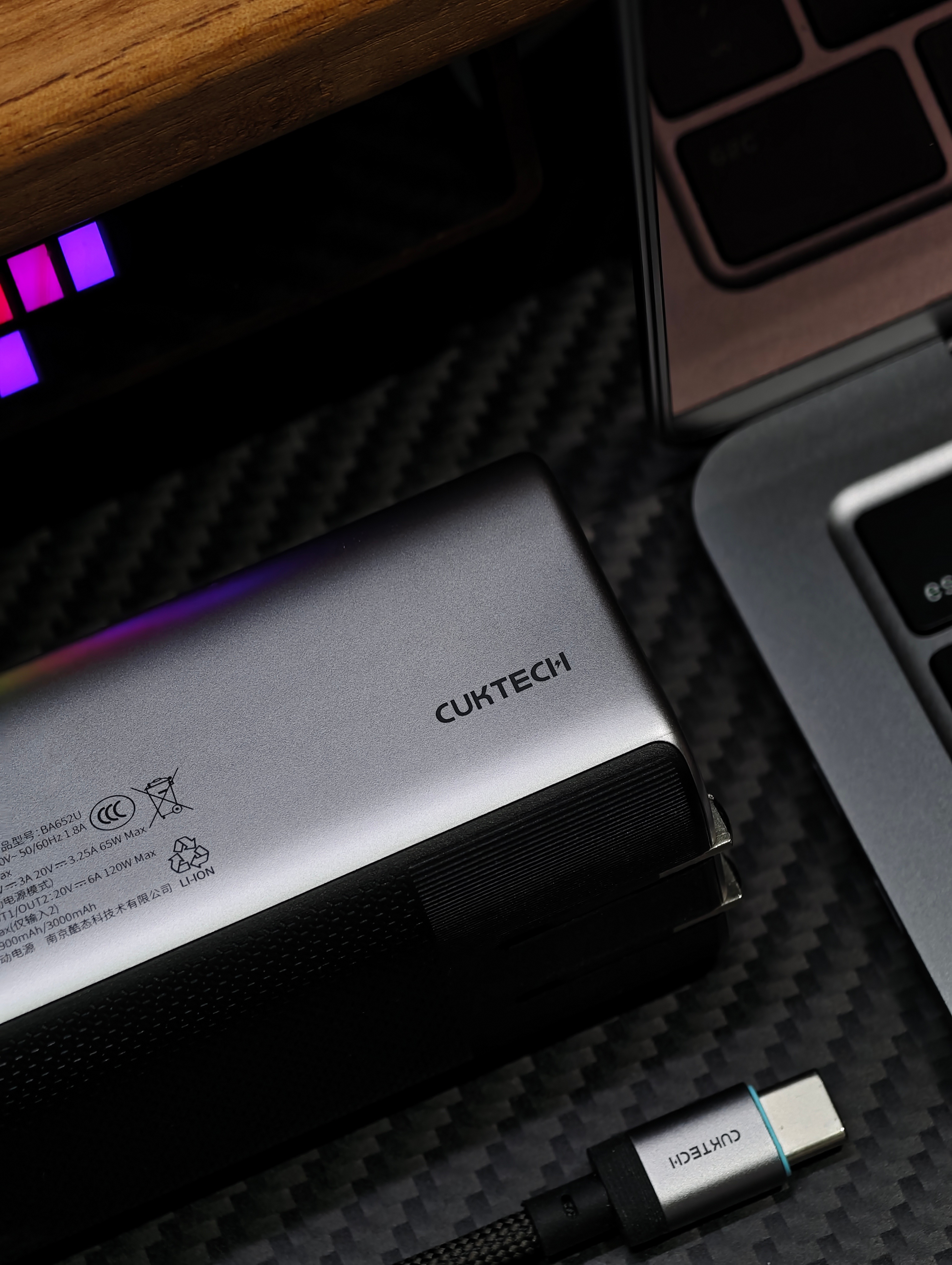 双C口设计,最大容量9000mAh,充电宝模式下它是一个 90W MAX 充电宝,充电器模式下开启Turbo模式,AC+DC最大支持120W MAX 快充。
