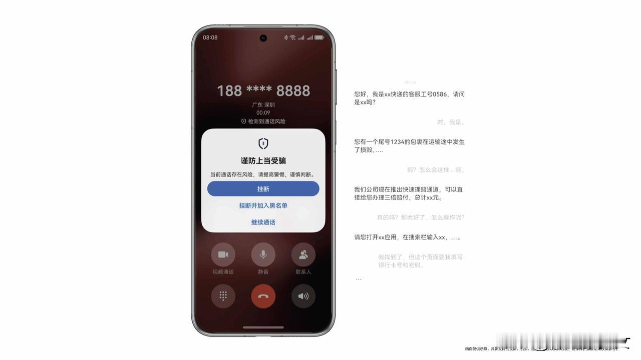 现在诈骗手段层出不穷防不胜防,骚扰电话也是越来越多无孔不入。还是得有靠谱的安全访问机制比较稳妥呀。比如鸿蒙6星盾安全架构再升级,全新的AI防诈支持亲情防诈保护功能,能够帮助用户远程守护家人,长辈不太会辨别诈骗的鸿蒙6会帮父母挂断诈骗电话 ,还可将诈骗电话拉进“家庭黑名单”,拦截风险,让用户更安全、更省心。