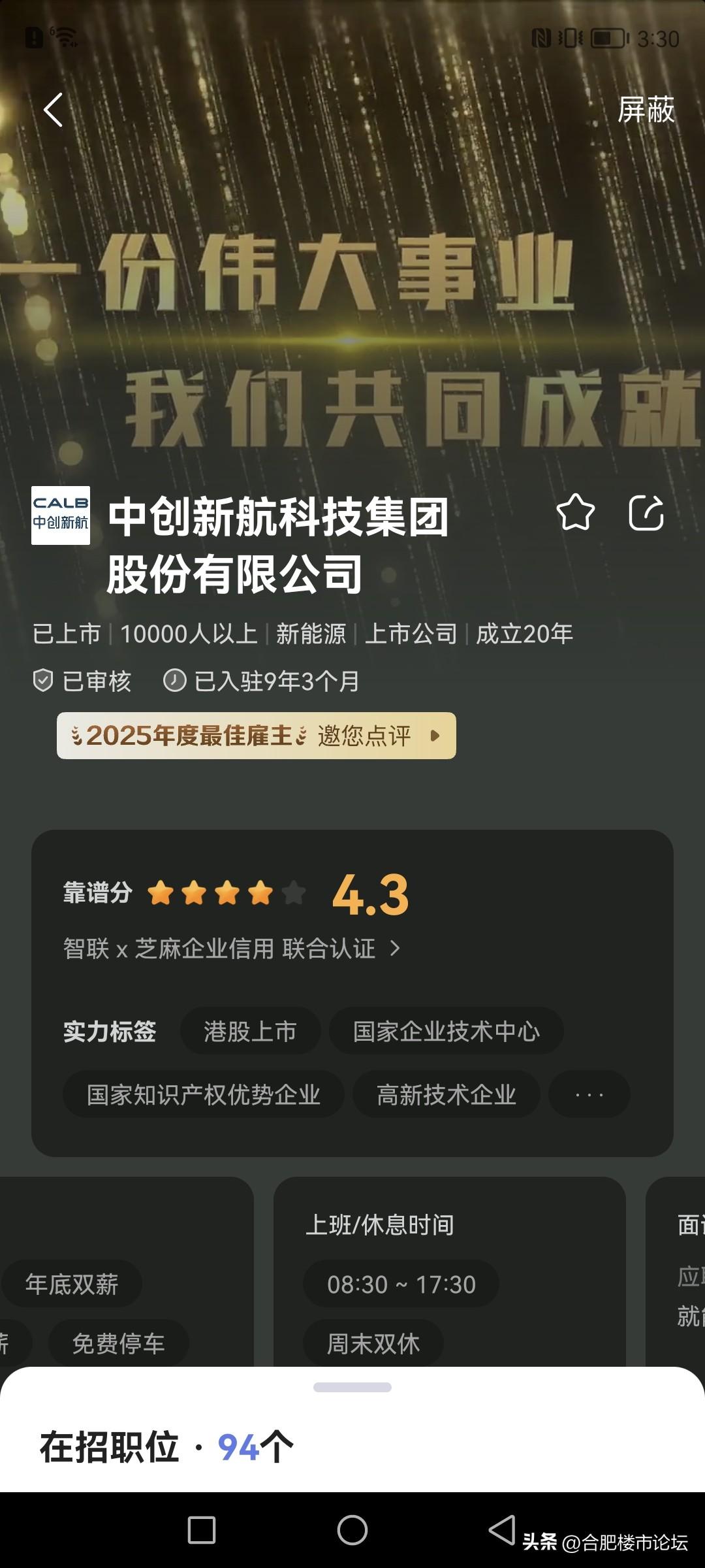 很多人在合肥市区觉得找工作难,除了销售就是中介,其实好公司,那些大厂好工作都在合肥周边。在那些高大上的写字楼里的,基本都是懂的都懂那种。 比如长丰下塘除了有比亚迪,还有中创新航科技这个公司招聘,这个薪资待遇的确可以吧!