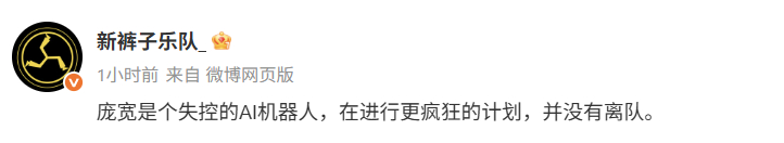 新裤子否认庞宽离队通过官博否认庞宽疑似离开新裤子乐队:“庞宽是个失控的AI机器