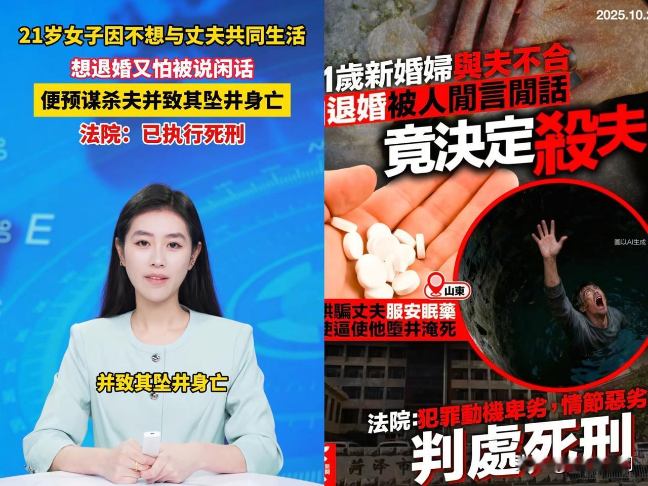 比潘金莲还狠!” 山东菏泽,21岁女子,新婚2个多月,她不想跟丈夫生活,又怕退婚父母被人说三道四。 虽说没人规定结婚就得一辈子捆绑,可她咋就选了这么极端的路呢?买安眠药哄丈夫当解酒药吃,还骗醉醺醺的丈夫下机井“捞鱼”。丈夫坠井4次求救,她开车绕几圈都不找人,最后还盖上井盖,活生生让丈夫窒息。 婚姻里合不来,好聚好散不难啊,哪怕跟父母坦诚说不想过,暂时躲躲、好好沟通,也不至于毁了别人又把自己搭进去。大家说说,要是她当初勇敢跟父母坦白,是不是这场悲剧就能避免了?