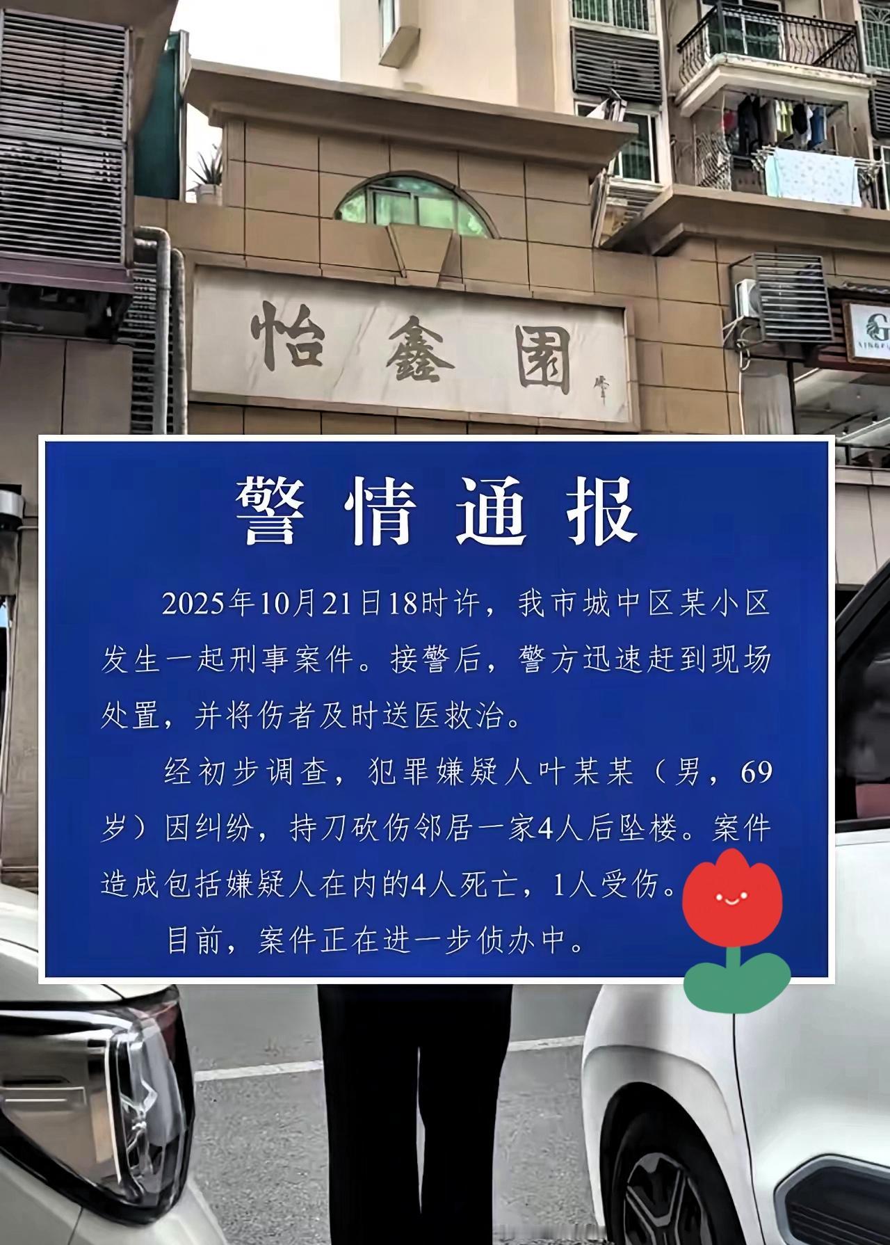 广西柳州小区纠纷命案,知情人透露,一个老人、一个老婆、一个小孩,孩子才2岁,据说是上下楼,原因有说是楼上的吵他! 黄昏六点,柳州城中区某个寻常小区里,69岁的叶某某提起菜刀走向邻居家。那个他或许曾一起乘凉、打招呼的邻居,此刻成了他仇恨的对象。纠纷积累的怒火在瞬间爆发,刀刃落下,三个邻居倒在血泊中。 行凶后,叶某某从高处坠落,将自己的生命终结在同一个夜晚。这起案件造成包括他在内的4人死亡,1人受伤,只有一个孩子幸存。 冰冻三尺非一日之寒 惨案并非毫无征兆。小区居民回忆,叶某某和受害邻居家关系一直紧张,近两个月物业已接到数次投诉。有邻居透露,他们曾因倒垃圾的位置起冲突,还动过手。 更令人心惊的是,叶某某并非第一次持刀伤人。六年前他就曾因琐事争吵,用菜刀将对方砍伤,被处以500元罚款和10日拘留。那次的刀被收走了,但心中的戾气似乎从未离开。 两个家庭的毁灭 受害家庭是一个普通的中国家庭——包括一位30多岁的男子、他2岁的儿子和家中的三位大人。他们在小区住了多年,待人友善,却无端遭此横祸。 行凶者叶某某平日里显得孤僻,不爱与人交流。邻里纠纷常常如此,开头不过是噪音、垃圾、停车位这些芝麻小事,却在日复一日的摩擦中发酵成深仇大恨。 柳州不止一例悲剧 这片土地上有过太多类似的悲剧。2018年,柳州一名男子因债务问题,将自己两个年幼女儿骗至山中掐死。那个凶手作恶后还假装参与搜寻,面对镜头面色平静。 更早的2017年,一名柳州女子因家庭纠纷,竟将前夫年仅6岁的侄女杀害。孩子做错了什么?大人的怨恨,为何总让最无辜的孩子付出代价? 社会反思的时刻 当“远亲不如近邻”变成“近邻成仇敌”,暴露的不仅是个人极端,更是基层治理的缺位。《民法典》早已明确,相邻权纠纷可通过社区调解、司法确认快速解决,为何这些机制在悲剧发生前形同虚设? 社区本可以建立“纠纷台账”,对多次争执的邻里重点盯防;民警出警时不能只“劝和”,应联动社区出具书面调解协议。若早有这样的干预,或许悲剧就不会发生。 我们每个人都该汲取教训。幸福者退让原则必须牢记,能够妥协退让的,只要不触及原则底线,没必要过于较真。活着,比什么都重要。 四个生命已经消逝,留给生者的是无尽的思考。当矛盾出现,我们是选择沟通与调解,还是任由怨恨在心中滋生? 各位读者你们怎么看?欢迎在评论区讨论。