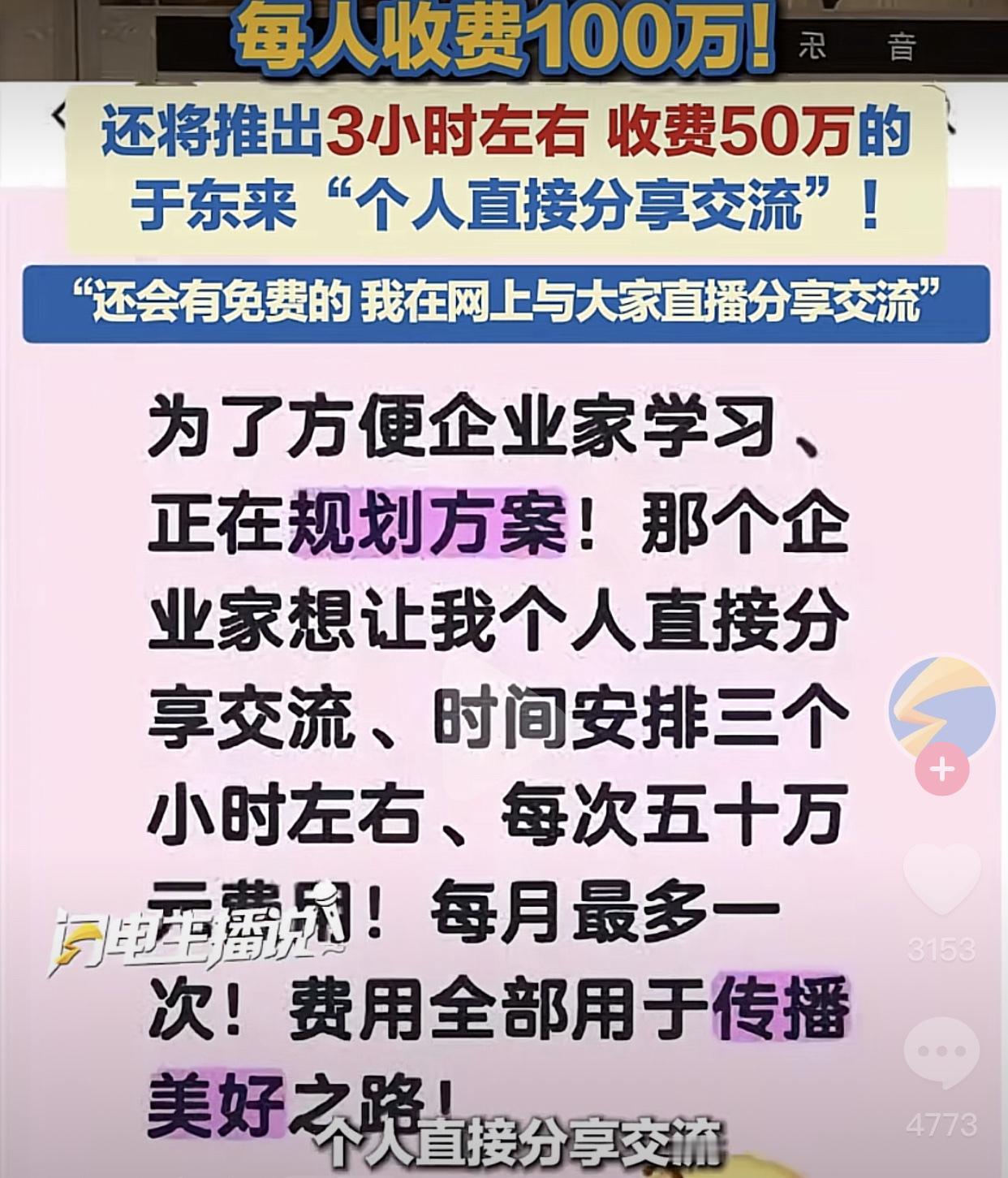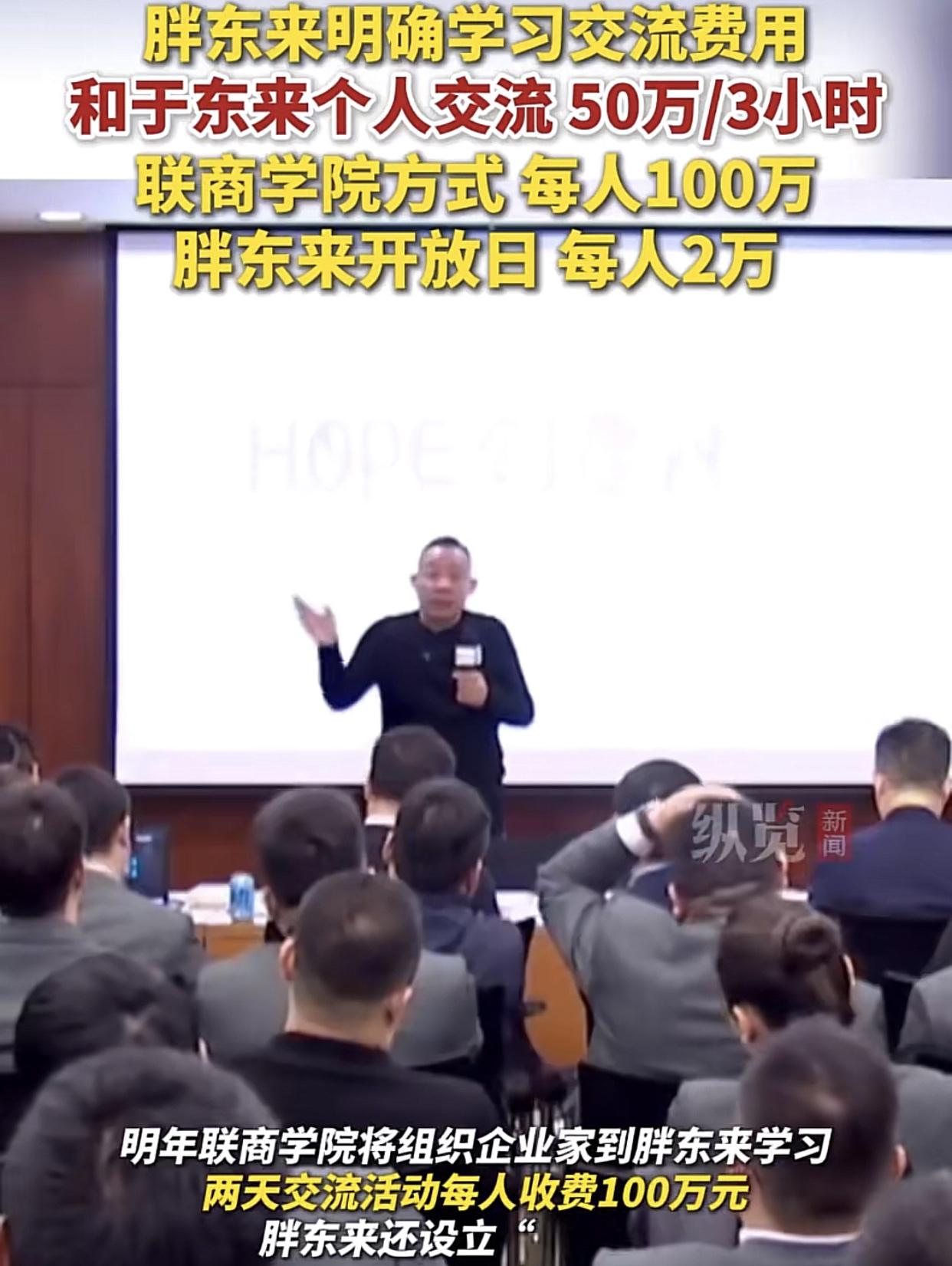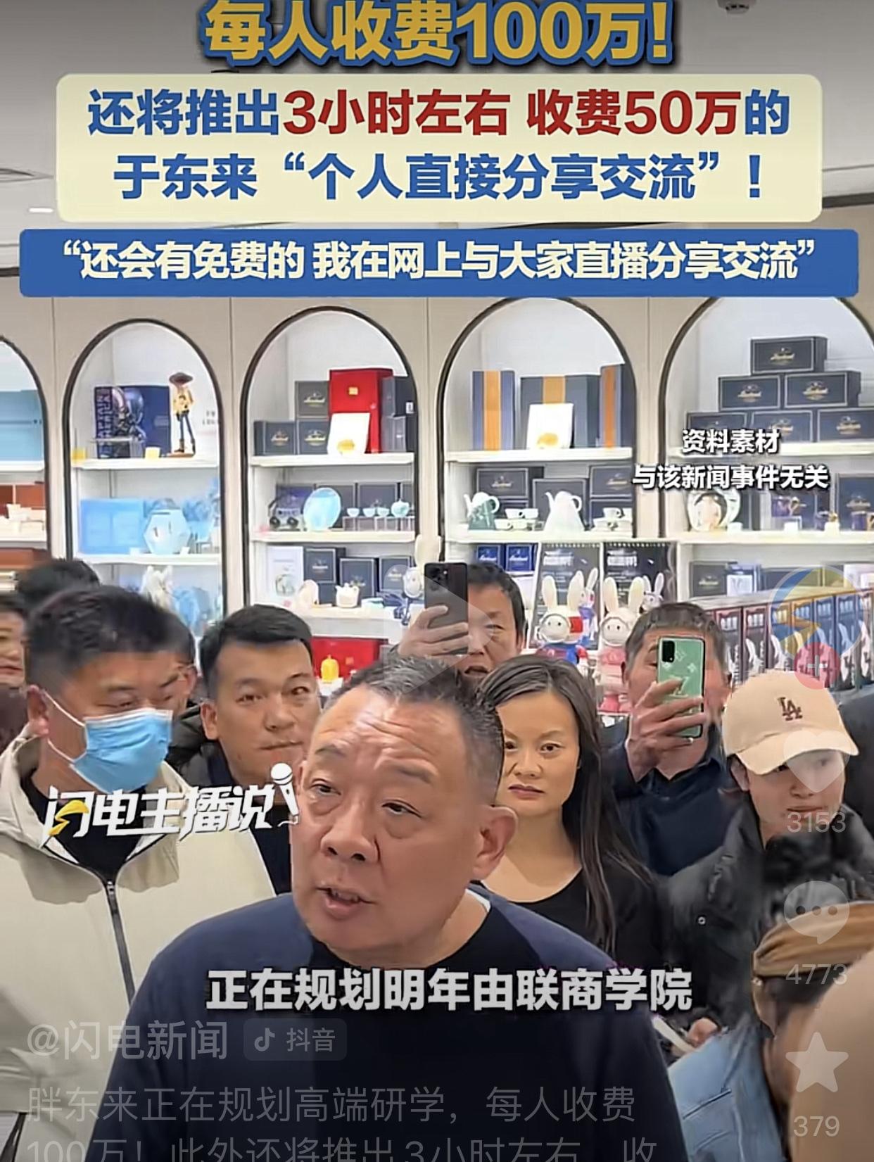 于东来的身价明码标价了: 高端研学,来听课的,每人100w!需要面对面个人传授经