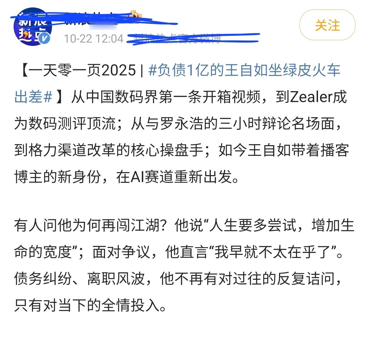 负债1亿的王自如坐绿皮火车出差 欠钱的赛道又卷起来了。
