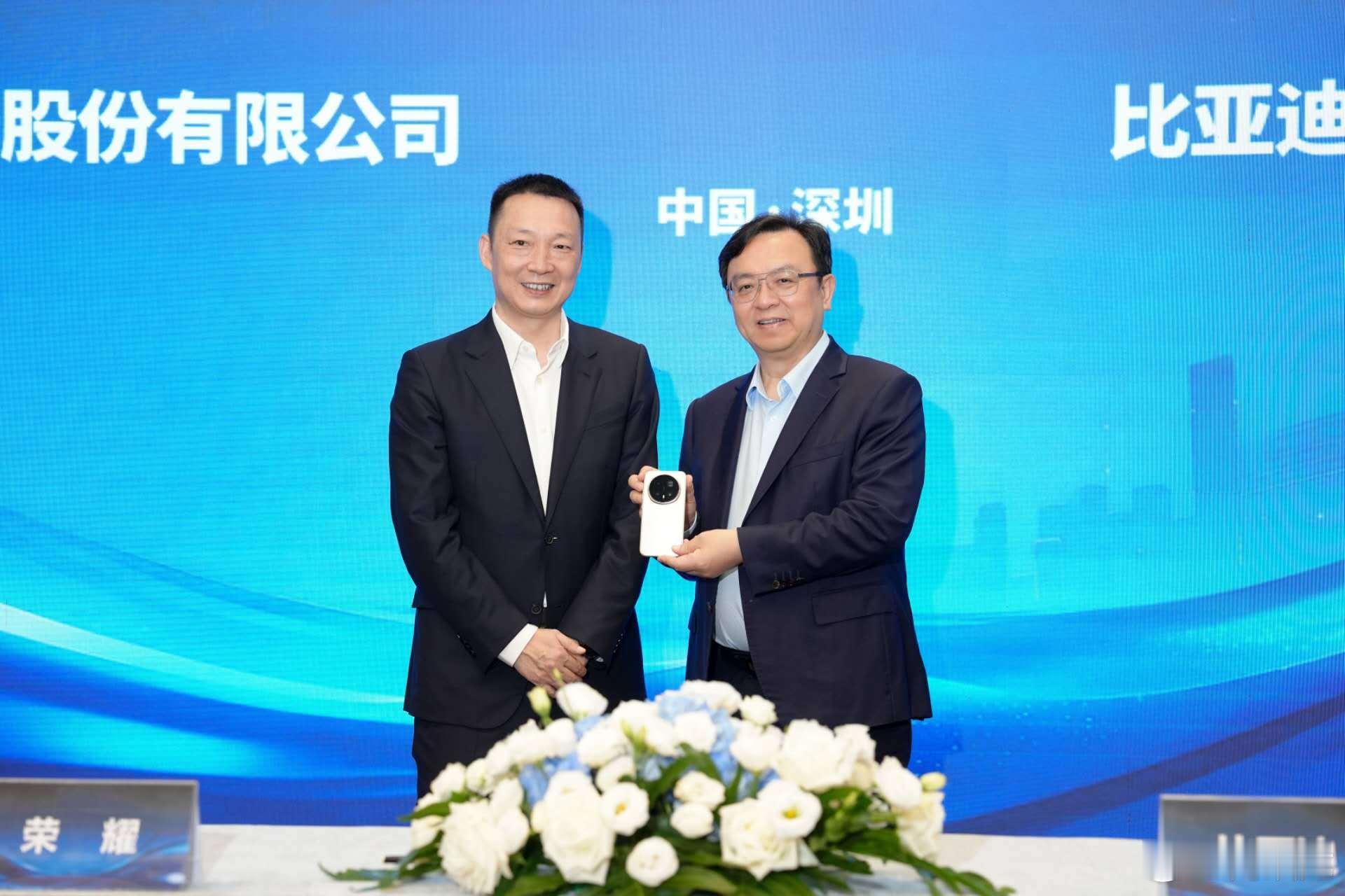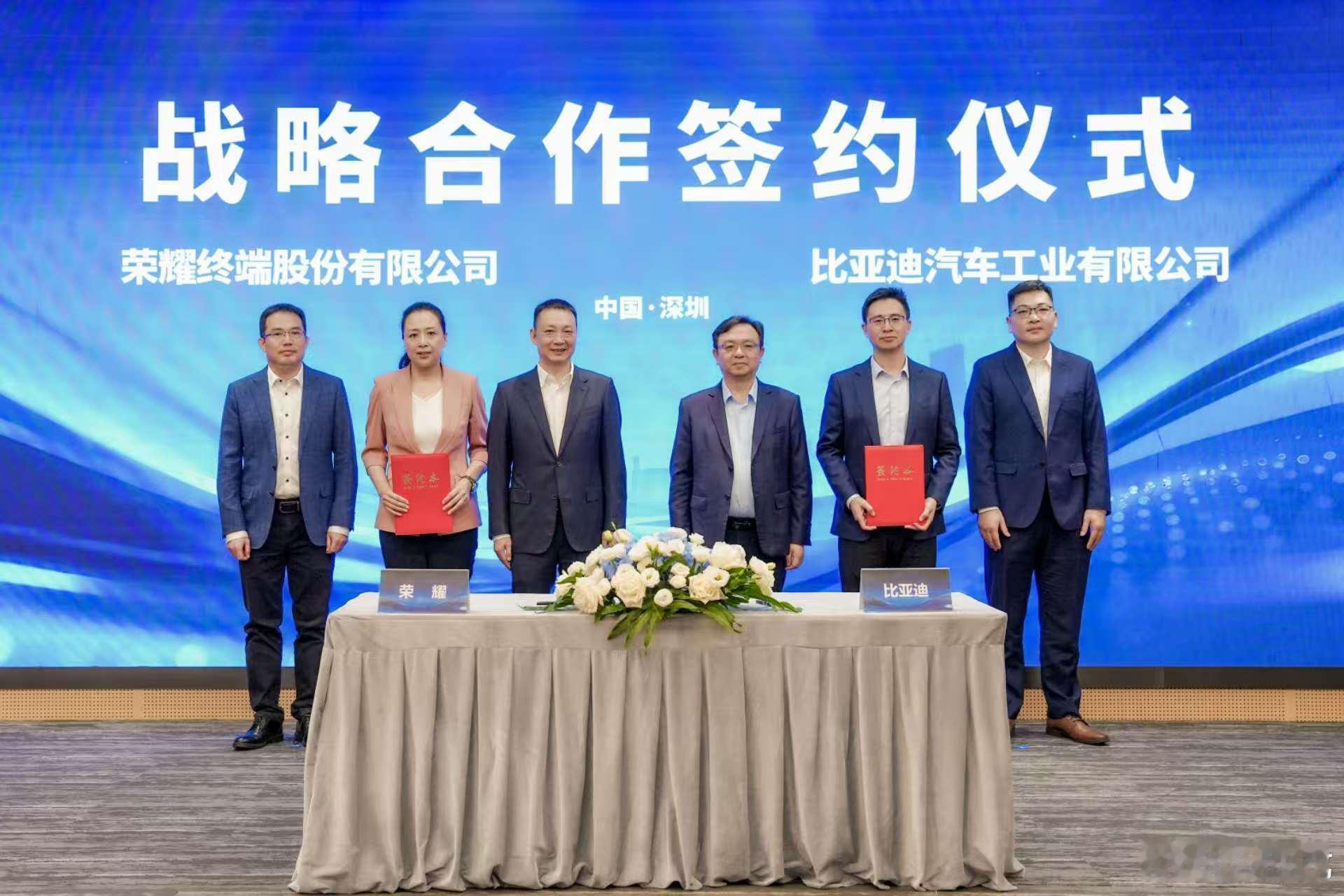 10月21日,荣耀与比亚迪在深圳签署战略合作协议。双方将依托荣耀车联解决方案与比亚迪 DiLink的全新一代智慧生态,以“人”为核心,基于用户智慧出行场景的需求,带来更智能、更个性化的出行体验。荣耀牵手比亚迪达成战略合作