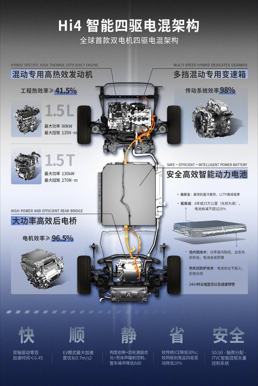 长城Hi4混动技术优势显著,体现在性能、安全、节能、平顺性、静谧性等多方面: