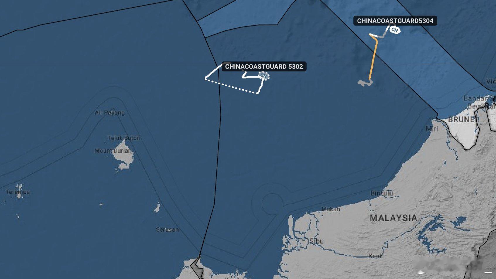 中国海警5302舰和5304舰今天继续在南海西南海域巡航