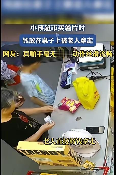 太丧良心了!小孩拿着零钱在超市买薯片,在结账的时候,男孩的前面有一位老人在结账。男孩也没有心眼,还没有轮到自己付钱,男孩就把自己身上仅有的五块钱放到了柜台上。 五块钱不多,可那是孩子满心期待的零食钱啊!有网友说老人拿钱的动作特熟练,好像这事儿天经地义,还有人说孩子吃点亏能长大,但这种亏根本不是成长的代价,是长辈在破坏孩子对世界的信任。都说“老吾老以及人之老”,可这位老人连小孩的钱都要占,怎么配得上“长辈”这两个字? 这事也提醒家长,得早点教孩子看好自己的东西,但更该反思的是,为啥有人一把年纪了,反而丢了最基本的良心? 你们要是在现场看到这一幕,会选择站出来帮孩子吗?