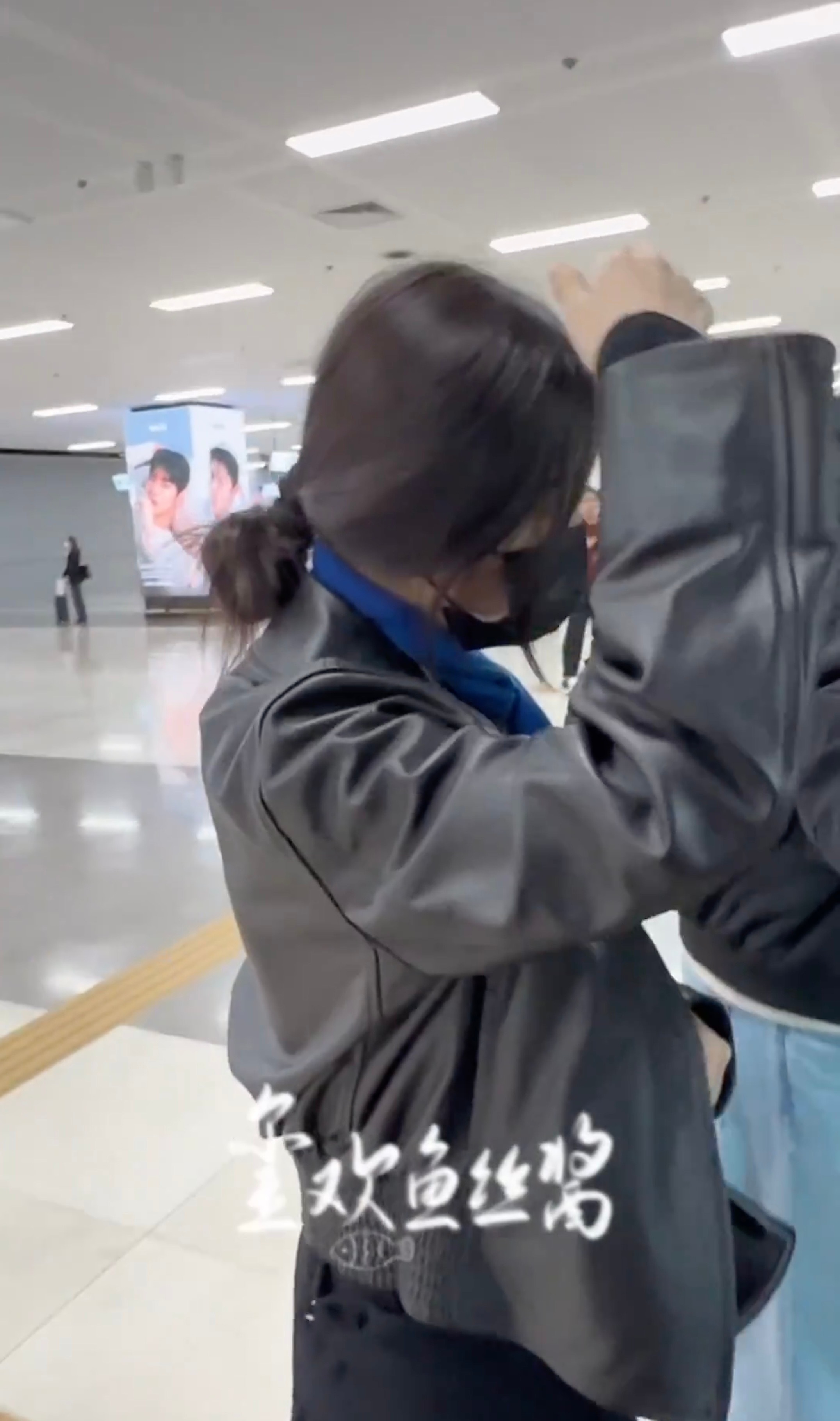 张天爱跟素人合影,胯真的好宽,大宅院似的