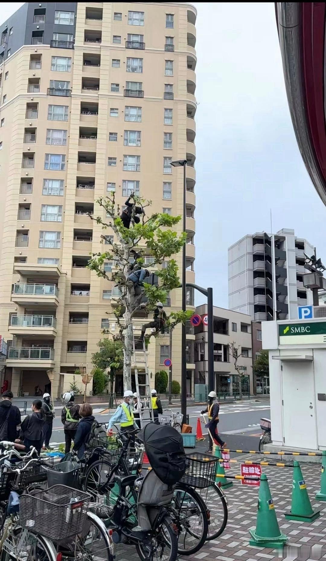 一直说日本人员短缺,看到日本剪个树都要弄这么多人,其中还有一部分老年人,这种过度