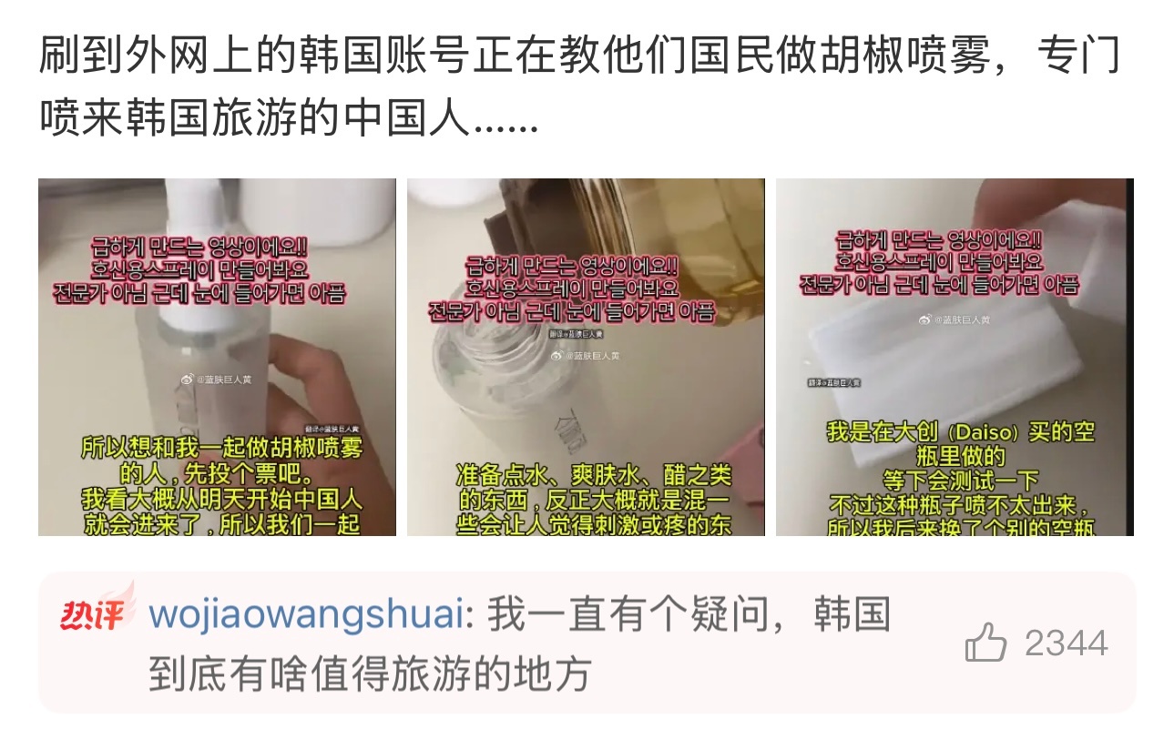 韩网友制作胡椒喷雾攻击中国游客