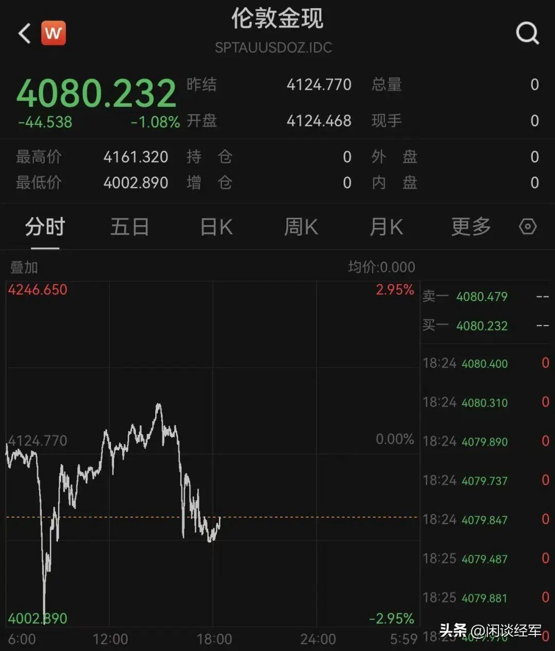 一夜之间,黄金从避险资产变成了风险资产。女子称“订了1公斤黄金15公斤白银,1小时亏5万元”。现在的黄金价格是国家级别经济博弈的产物,老百姓看看热闹就好,谁掺和谁倒霉。咱们既买不起也就从来不想买,所以我一点都不操心,没钱也可以快乐着。不会看国际形势,战争被叫停你还敢买黄金。黄金白银,大起大落,有人欢喜有人愁!喜的是有钱人,愁的也是有钱人,穷人没钱可得一份心安。只要你不卖就不会亏,硬通货不用怕,涨起来就是早晚的事