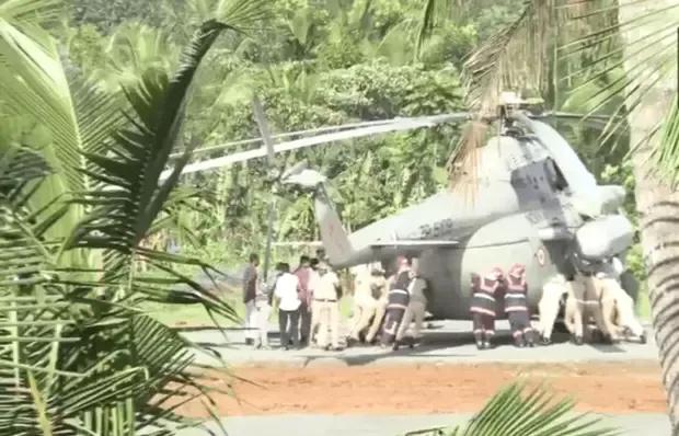 印度总统穆尔穆今日搭乘米 - 17直升机前往印度南部喀拉拉邦进行访问。当直升机降落于一处刚建成的停机坪时,惊险瞬间降临——停机坪突然出现塌陷,直升机机轮深陷其中,这可把穆尔穆惊出一身冷汗。 当地警方和消防部门人员接到指令后,迅速赶赴现场,众人齐心协力,用手奋力将直升机推出了塌陷区域。