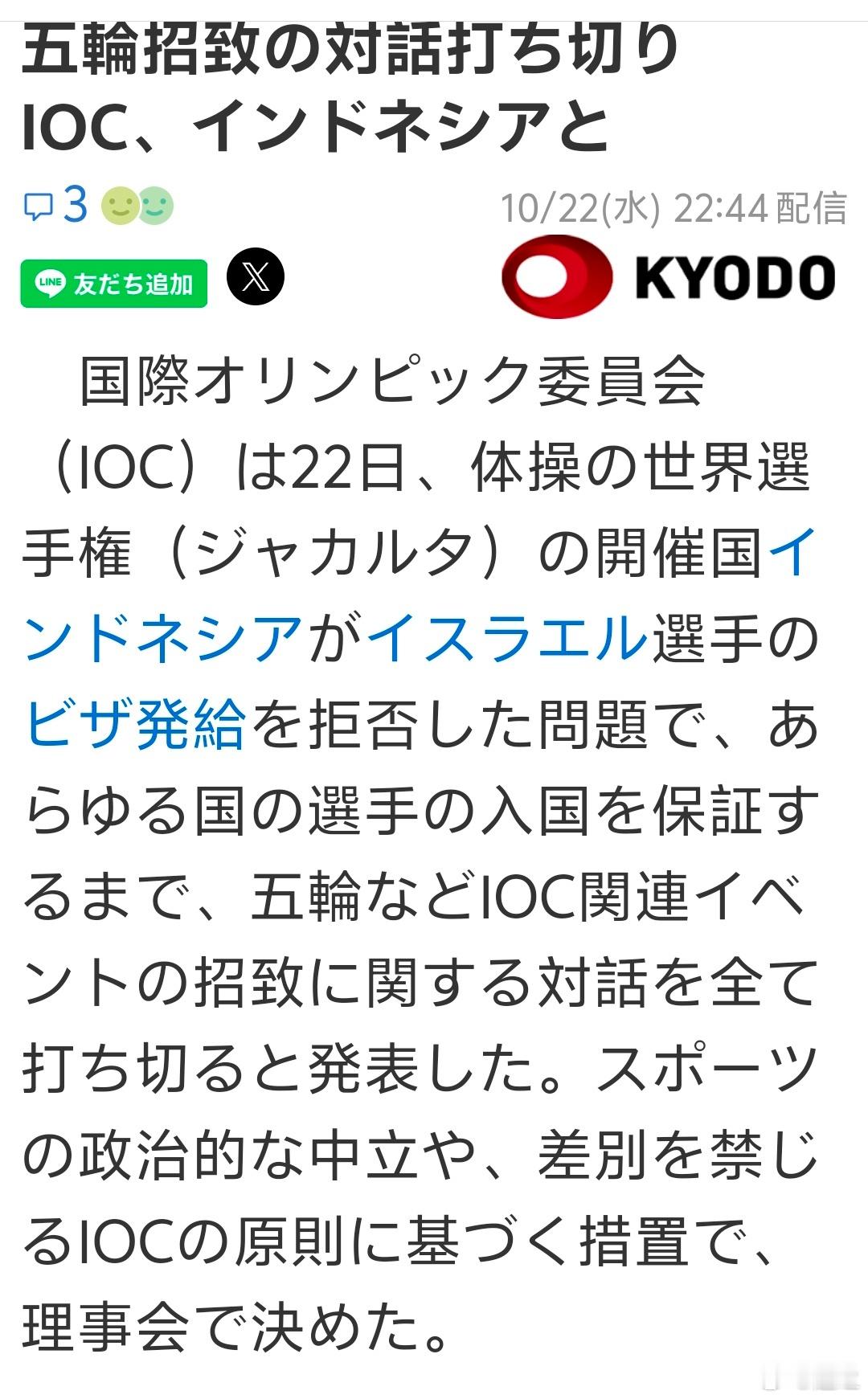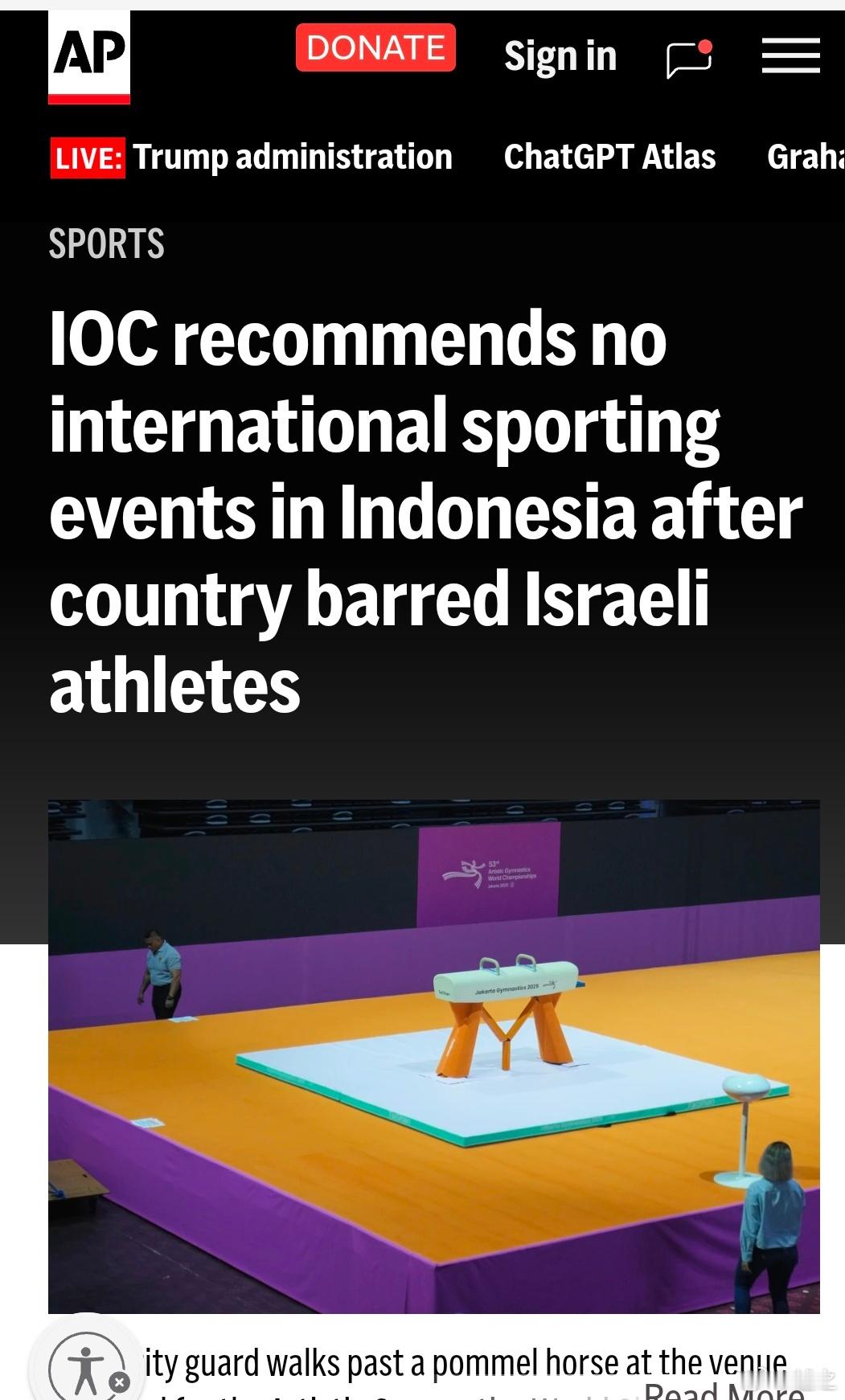因为印尼举办的体操世锦赛不给以色列运动员发签证。