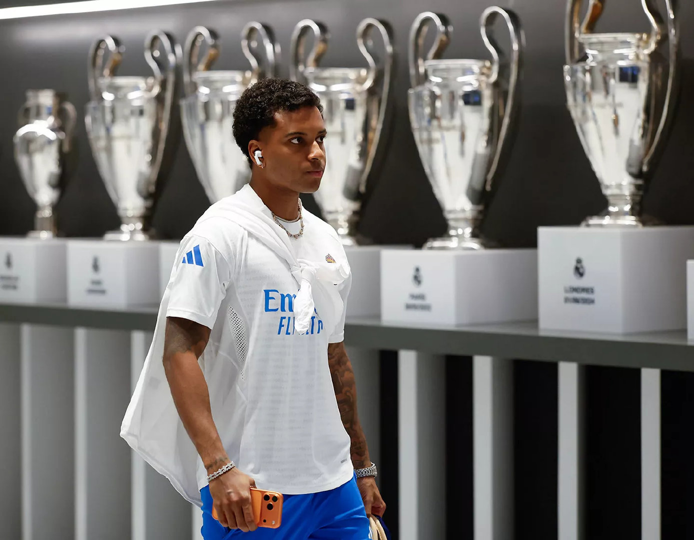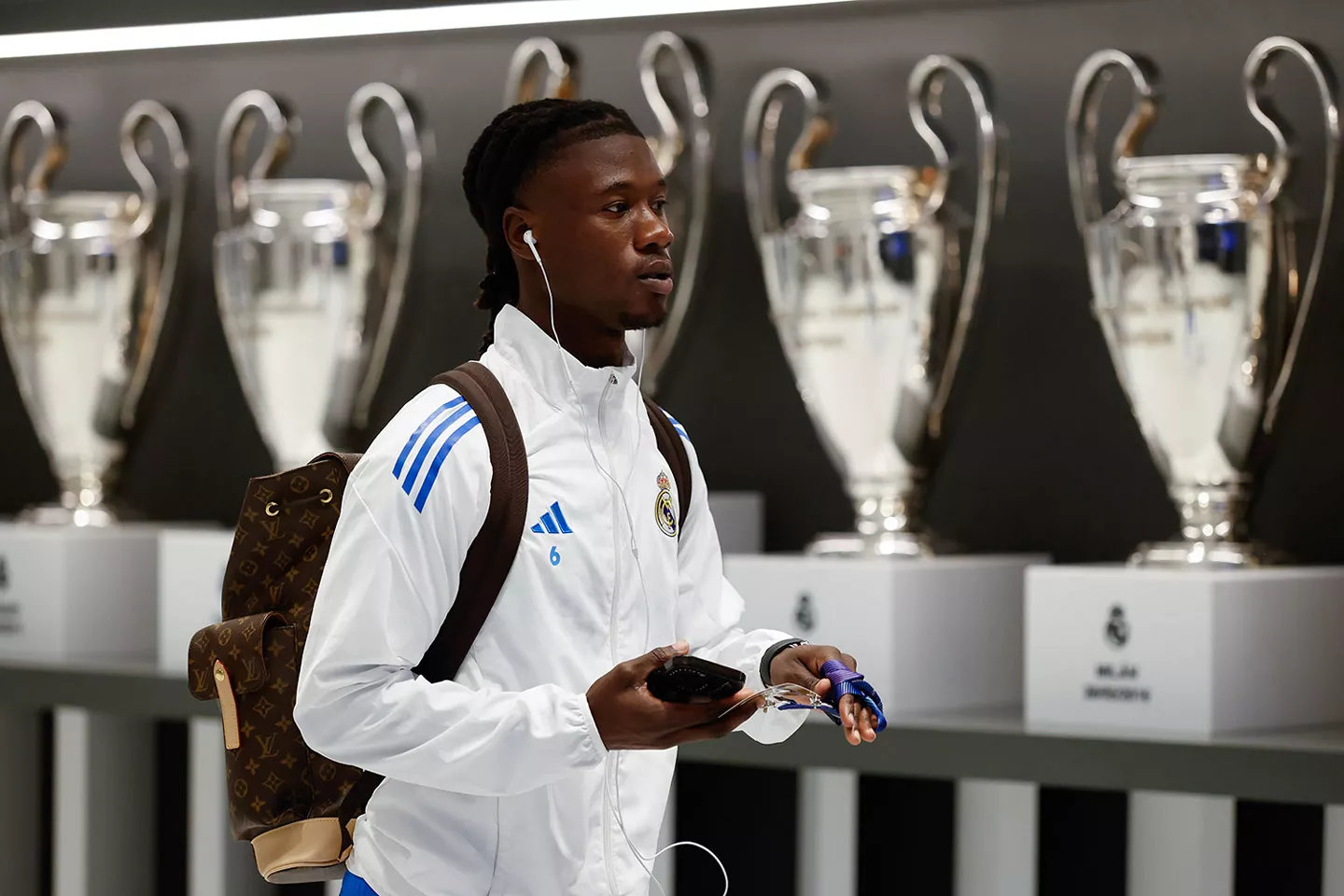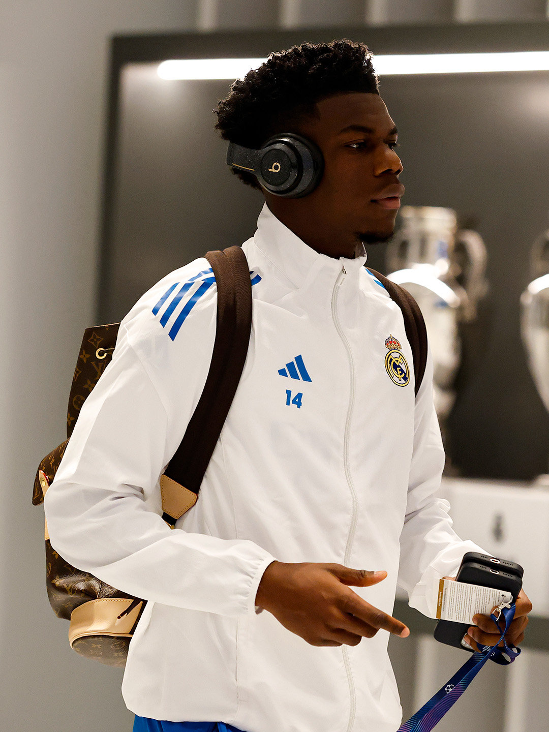 卡马温加、马斯坦托诺和罗德里戈正在热身。欧冠联赛皇马vs尤文图斯