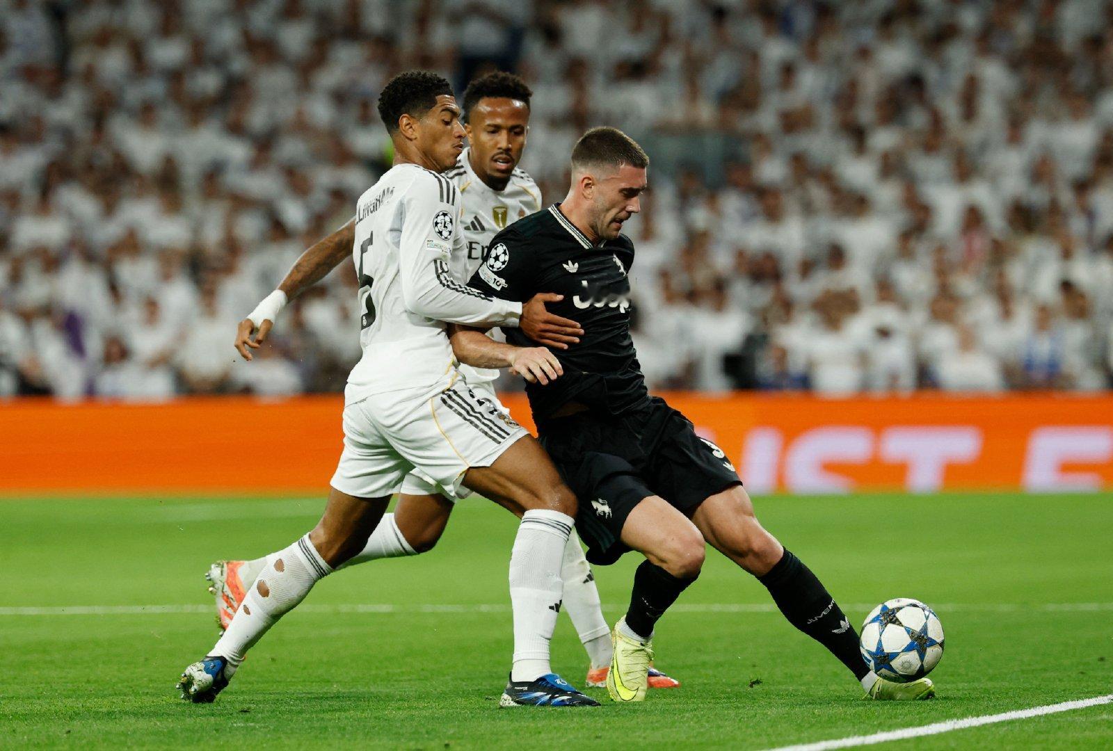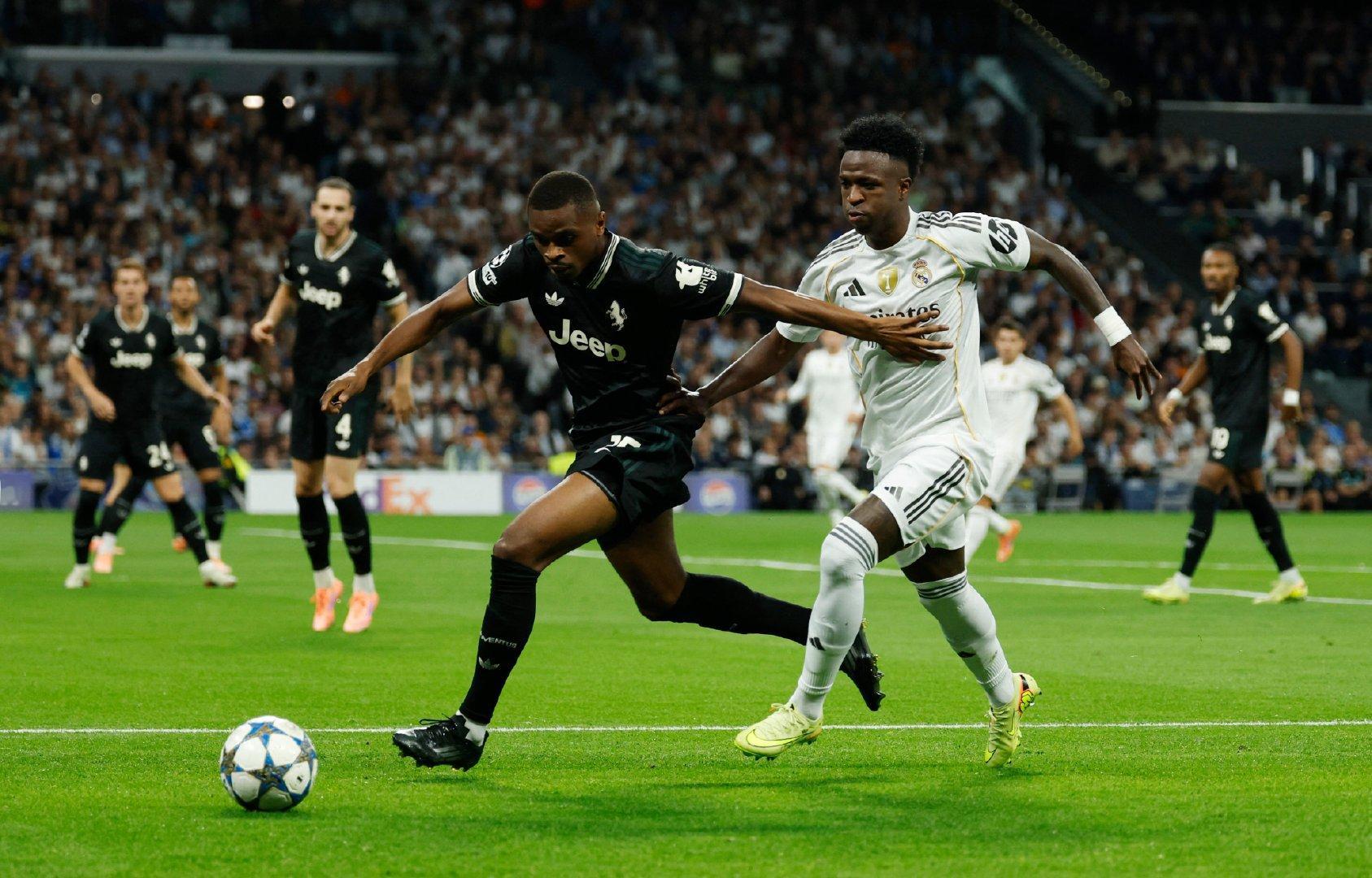 上半场比赛结束,皇马0-0尤文图斯。