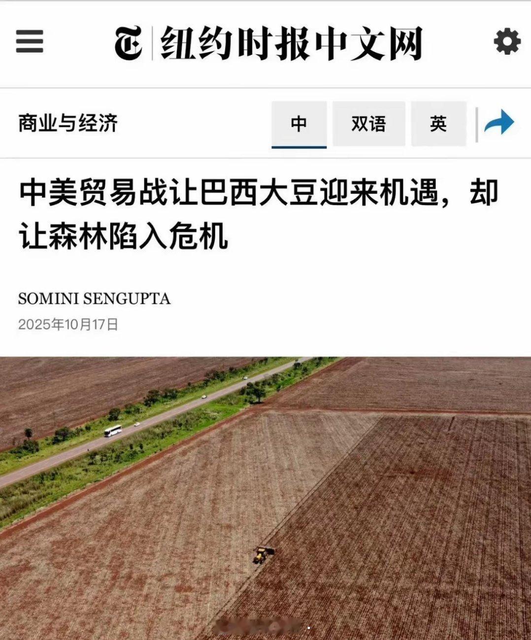 批判中国买巴西大豆是破坏森林,它们说中国买巴西大豆越多,就破坏越多森林,没想到它们的小作文这么快就来了。。