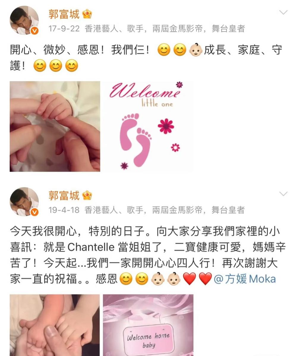 看得出来,郭富城非常喜欢这个三女儿 前面俩闺女出生时,他官宣照都没有公布孩子长相