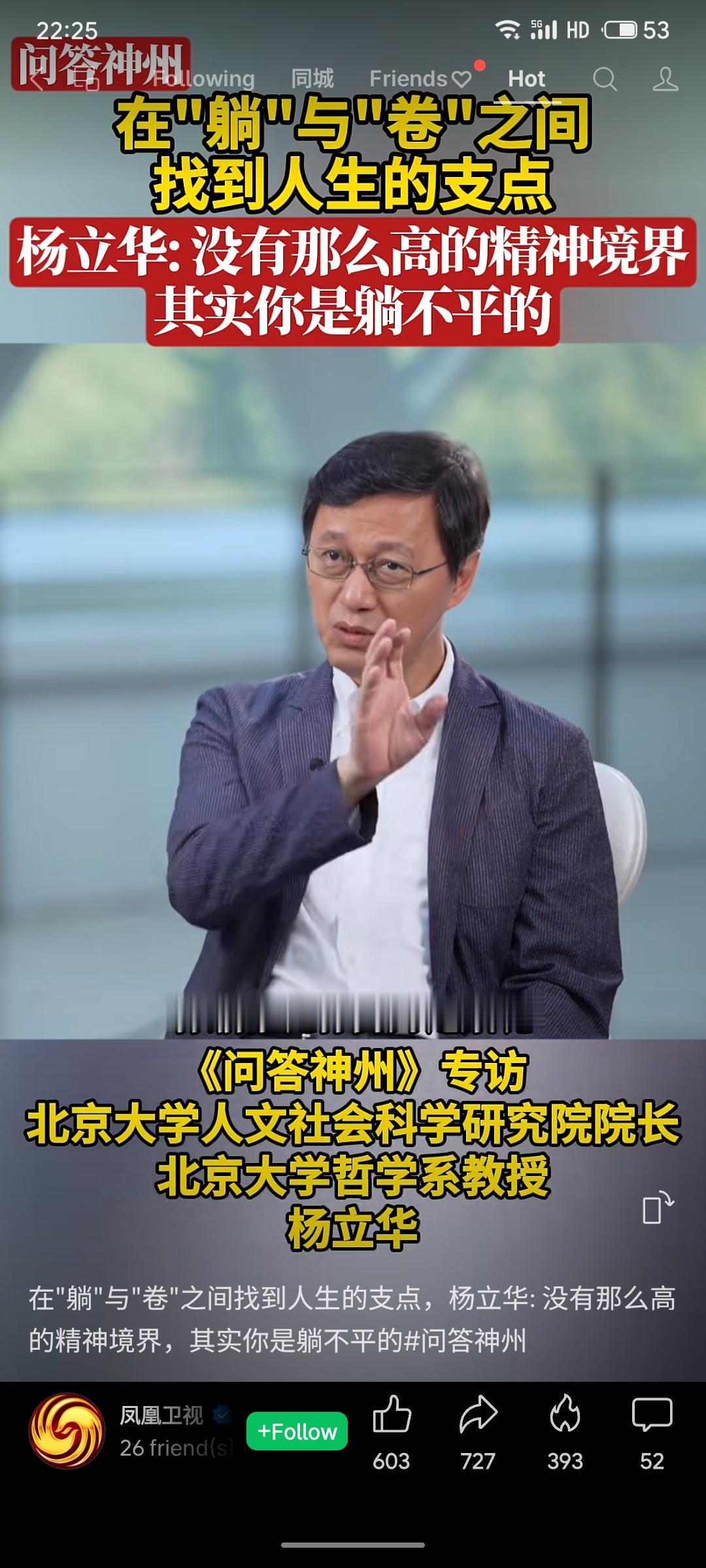 北京大学杨立华教授指出,缺乏足够精神境界的人实际无法真正躺平,因为"躺平比努力还累"。他主张在"躺"与"卷"之间寻找人生支点。