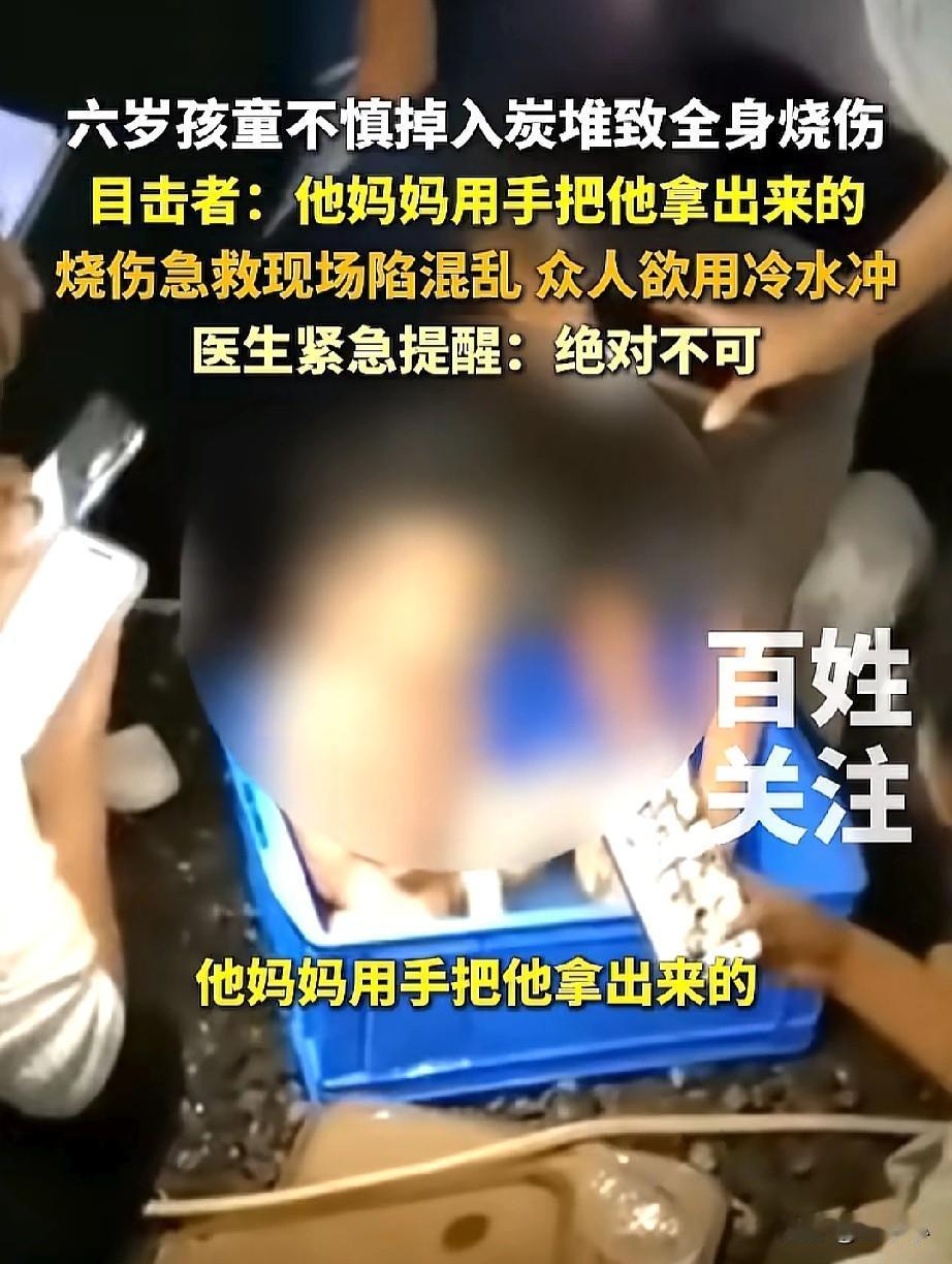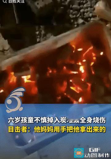 让人揪心!四川一6岁孩子玩耍时掉入碳堆中,妈妈徒手伸进去把孩子抱了出来,现场一片