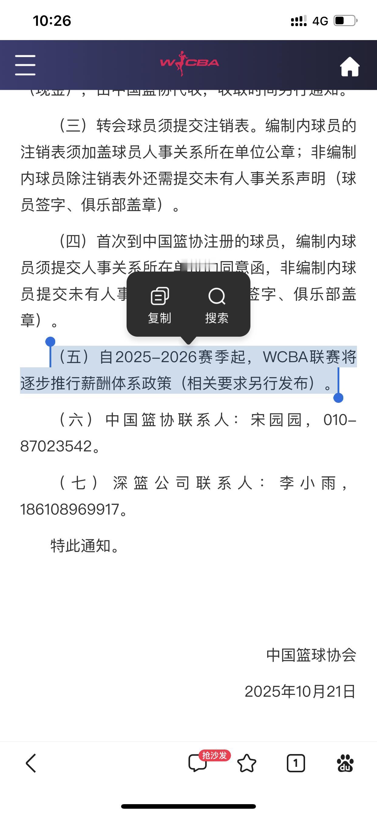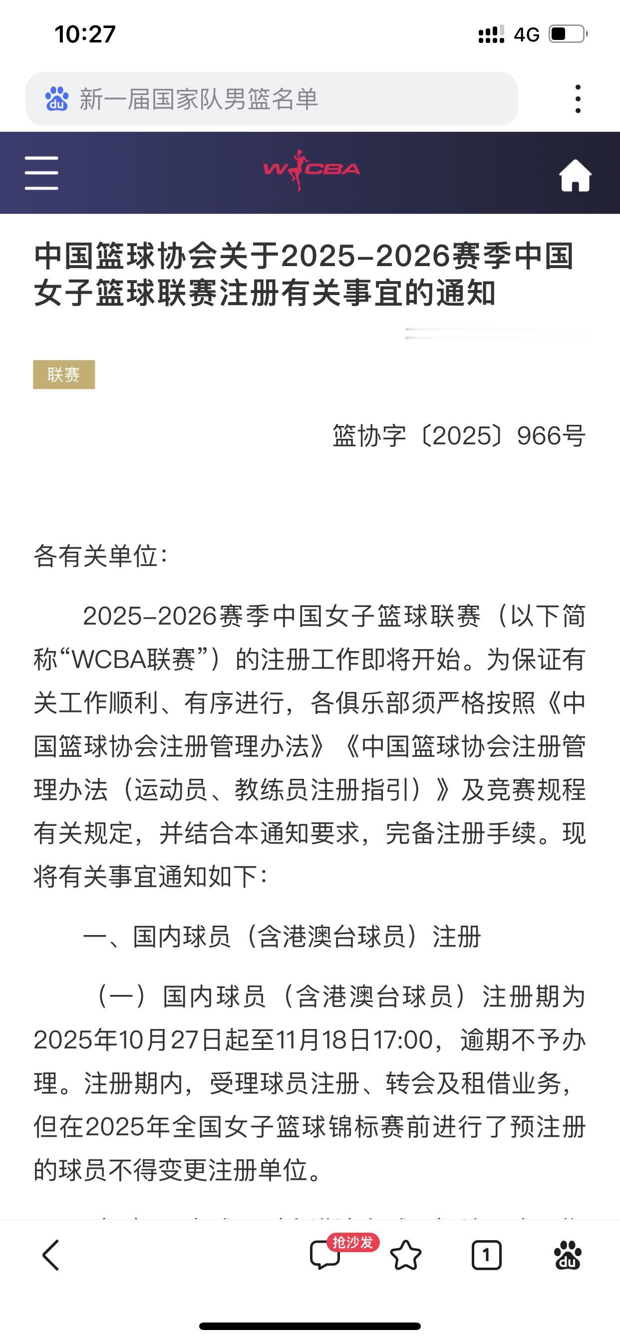 中国篮协官宣要对WCBA设立“工资帽”了! 请看下图《中国篮球协会关于2025-2026赛季中国女子篮球联赛注册有关事宜的通知》 中国篮协这个操作,说明2个月前传言要设立“工资帽”的说法变成真的了! 其实在WCBA设立“工资帽”,说实话,从以往的各支球队的投入以及各支球队能得到的商业合作来看 设立工资帽这事,并不是一件利大于弊的事 只是希望,这次所谓的“WCBA联赛将逐步推行薪酬体系政策” 能让更多的球队加大投入,能够找到有力的商业支撑,不要总是希望中国篮协出面搞强制性的抑制政策!