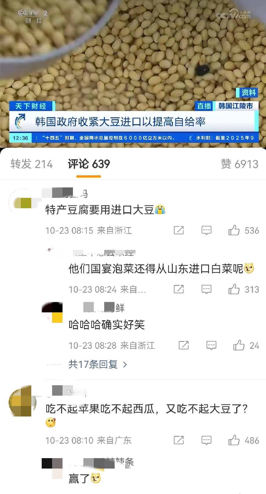 韩国人快吃不上豆腐了? 韩国人最近快被一块豆腐愁坏了——江原道40多家豆腐厂库存见底要停产,大学食堂直接限供,每人一顿只能拿三四片,网友直呼"连豆腐汤都喝不踏实了"。 韩国95%的大豆都靠进口,最近进口量锐减,本土大豆产量才够需求的5%,价格还比进口的贵三四倍,小厂子根本用不起,只能停工歇业。以前5块钱能买两块的豆腐,现在直接翻倍,不少超市都开始限购,曾经的"平民食品"快变"奢侈品"了。 更有意思的是,这不是韩国第一次被食材"卡脖子",之前白菜、苹果都涨过价,一个苹果能卖到12块钱。说到底还是供应链太脆,一旦进口出问题,餐桌就得受影响。 还是网友说的好:可以买漂亮国的大豆,也算是“双向奔赴”了[看] 日常吃的东西看着普通,背后藏着大讲究。你们家最爱吃哪种豆腐做法?是麻辣豆腐还是小葱拌豆腐?来评论区聊聊,看看谁的吃法最香~ 韩国豆腐告急 全球供应链那些事 民生食品价格