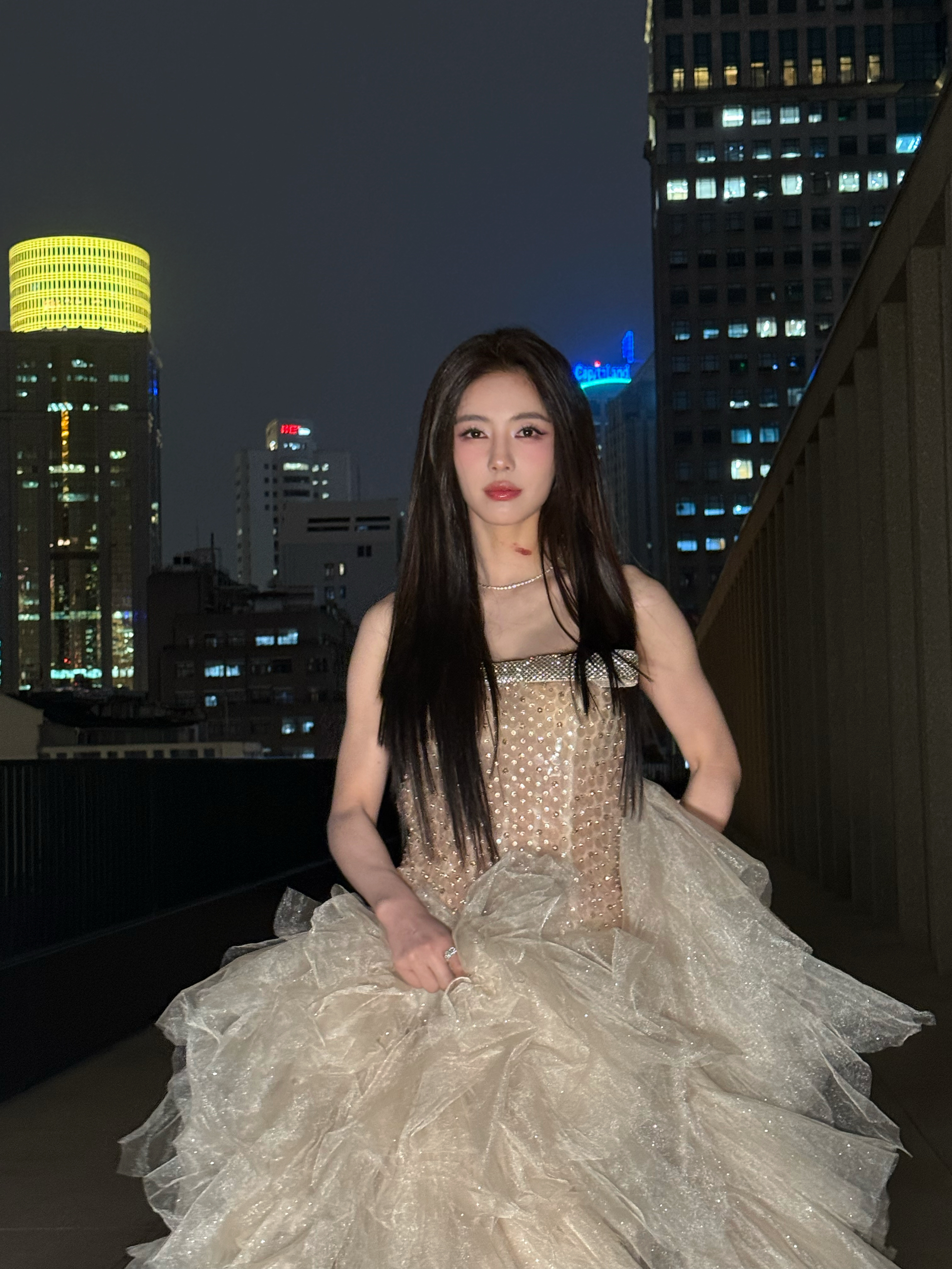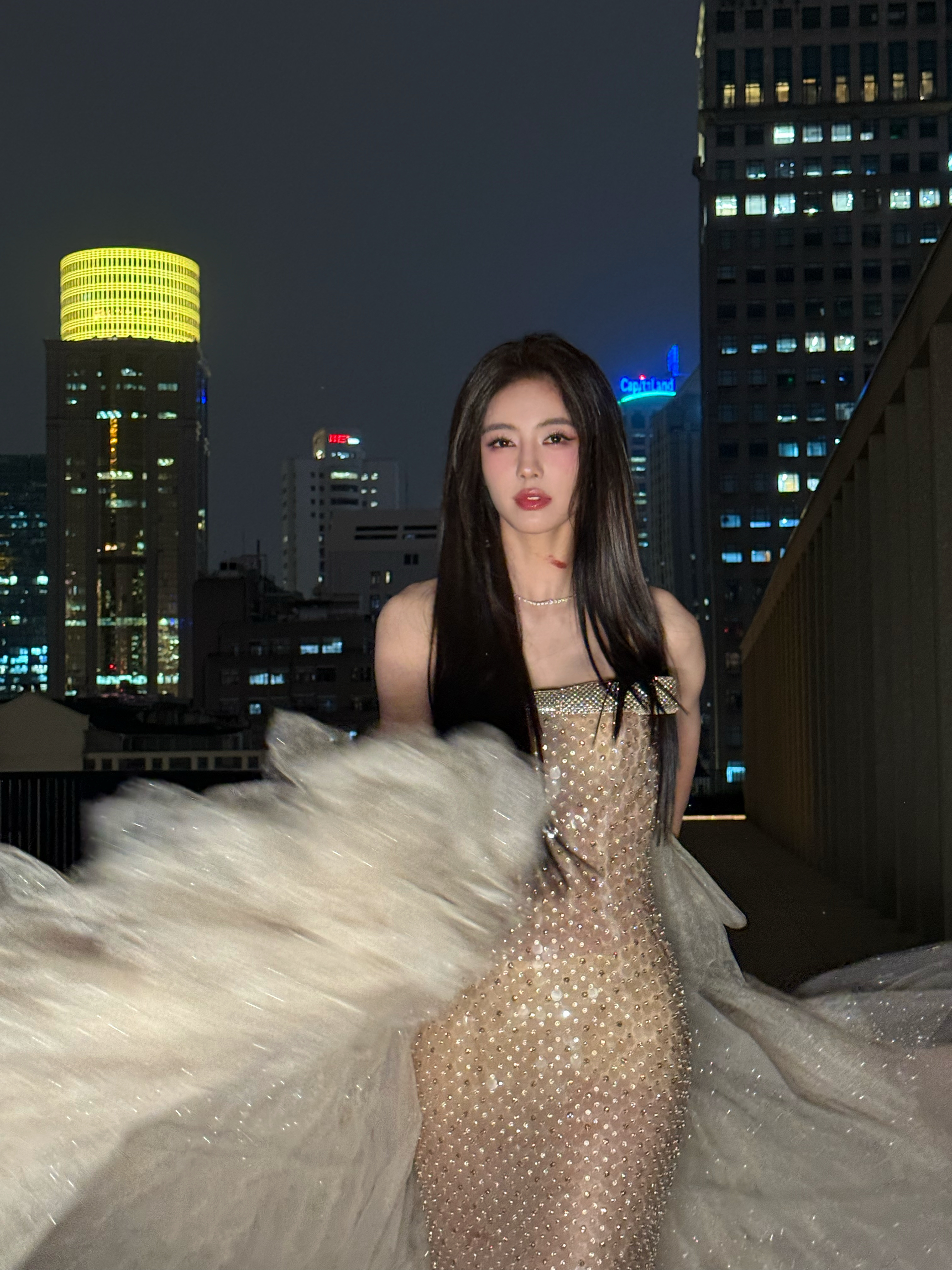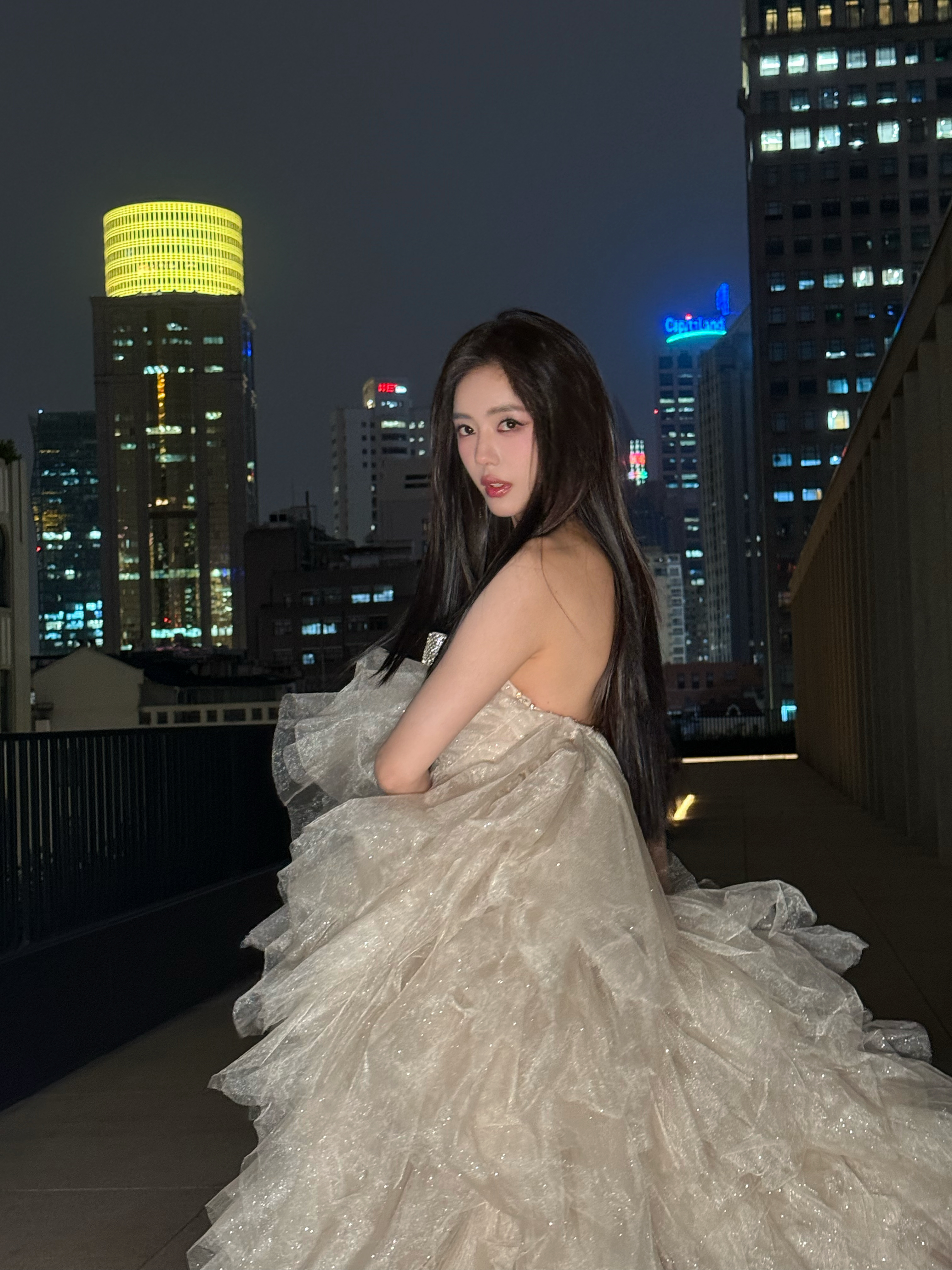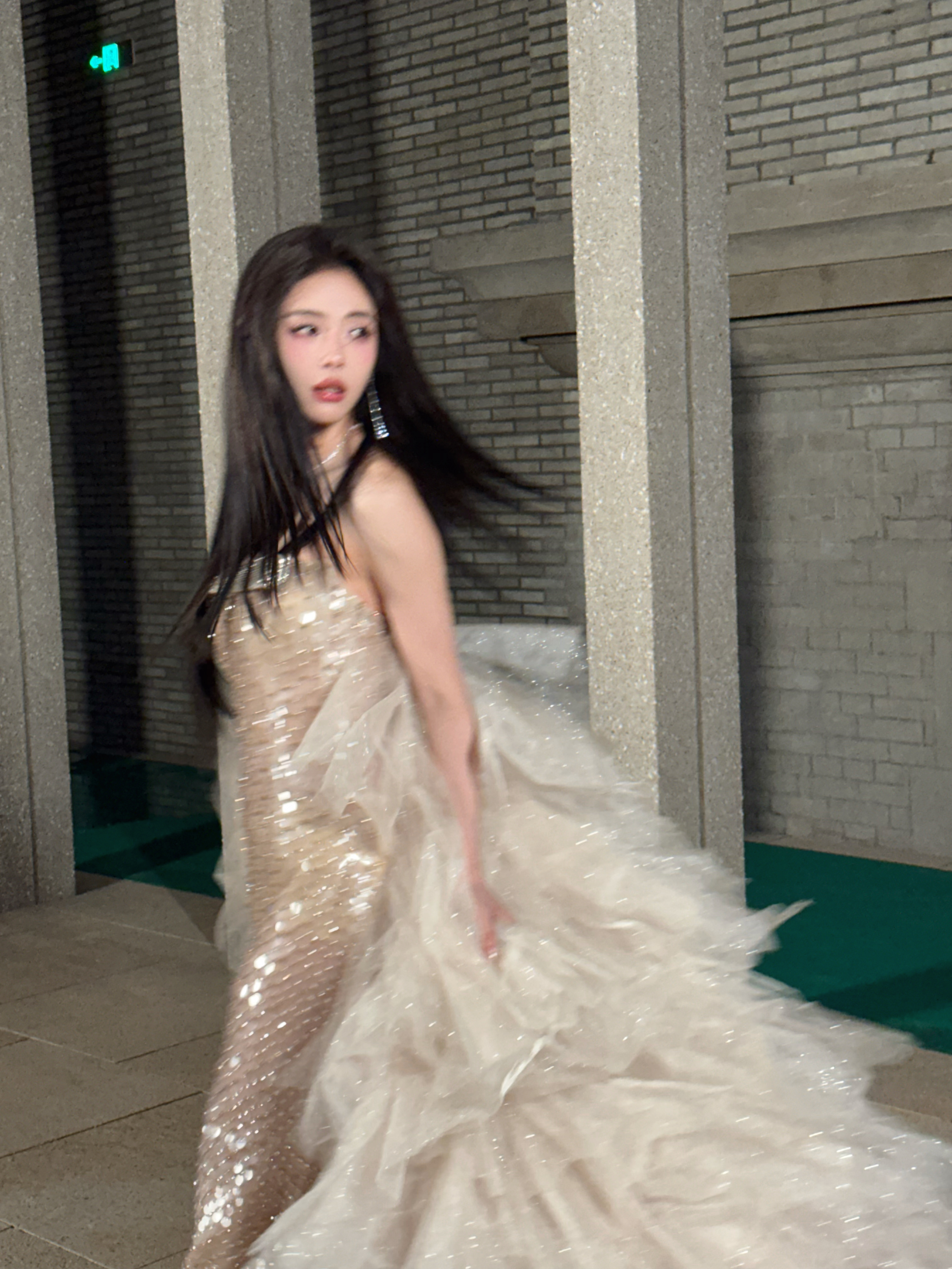 张天爱跟素人合影,胯真的好宽,大宅院似的