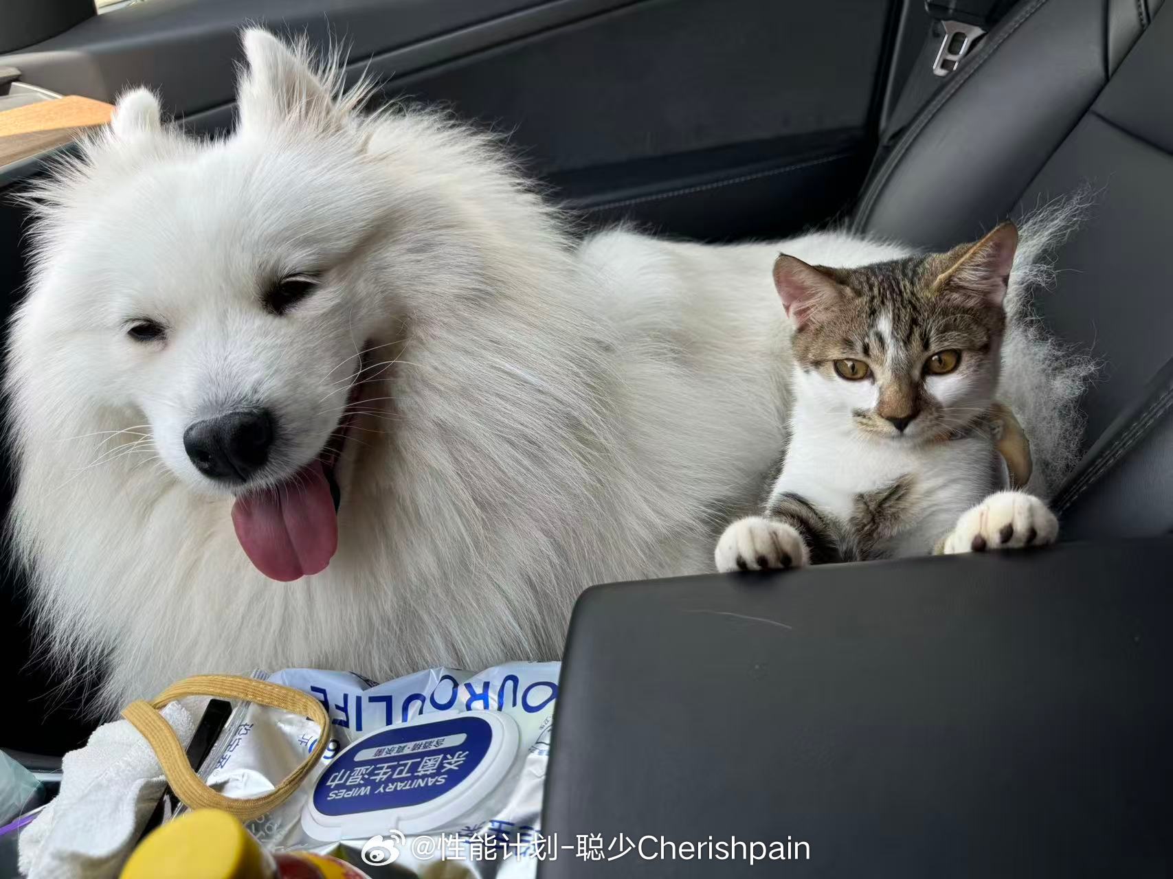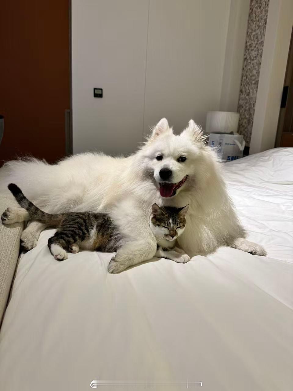 好朋友捡来的狗子和猫,他俩真的好喜欢在一块玩~