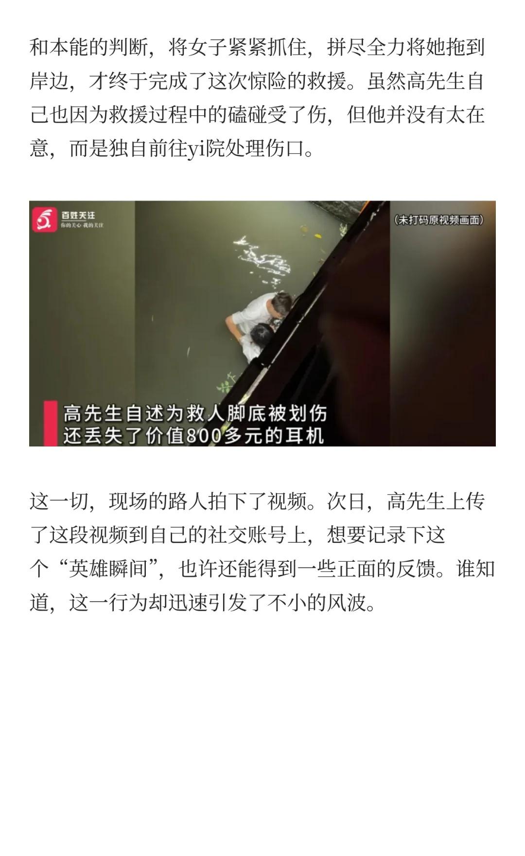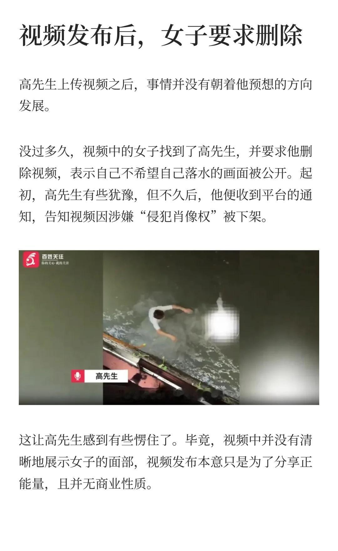 😱就离谱!男子救人反被女子举报?! ❤男子跳河救人反被举报侵权! 救人视频不打码发布后,被救女子以侵犯肖像权为由要求下架👊 救人者寒心打码重发,自称传播正能量, 网友为此吵翻,你怎么看💬? 热点 救人与危难 人身安全保护 真实案件