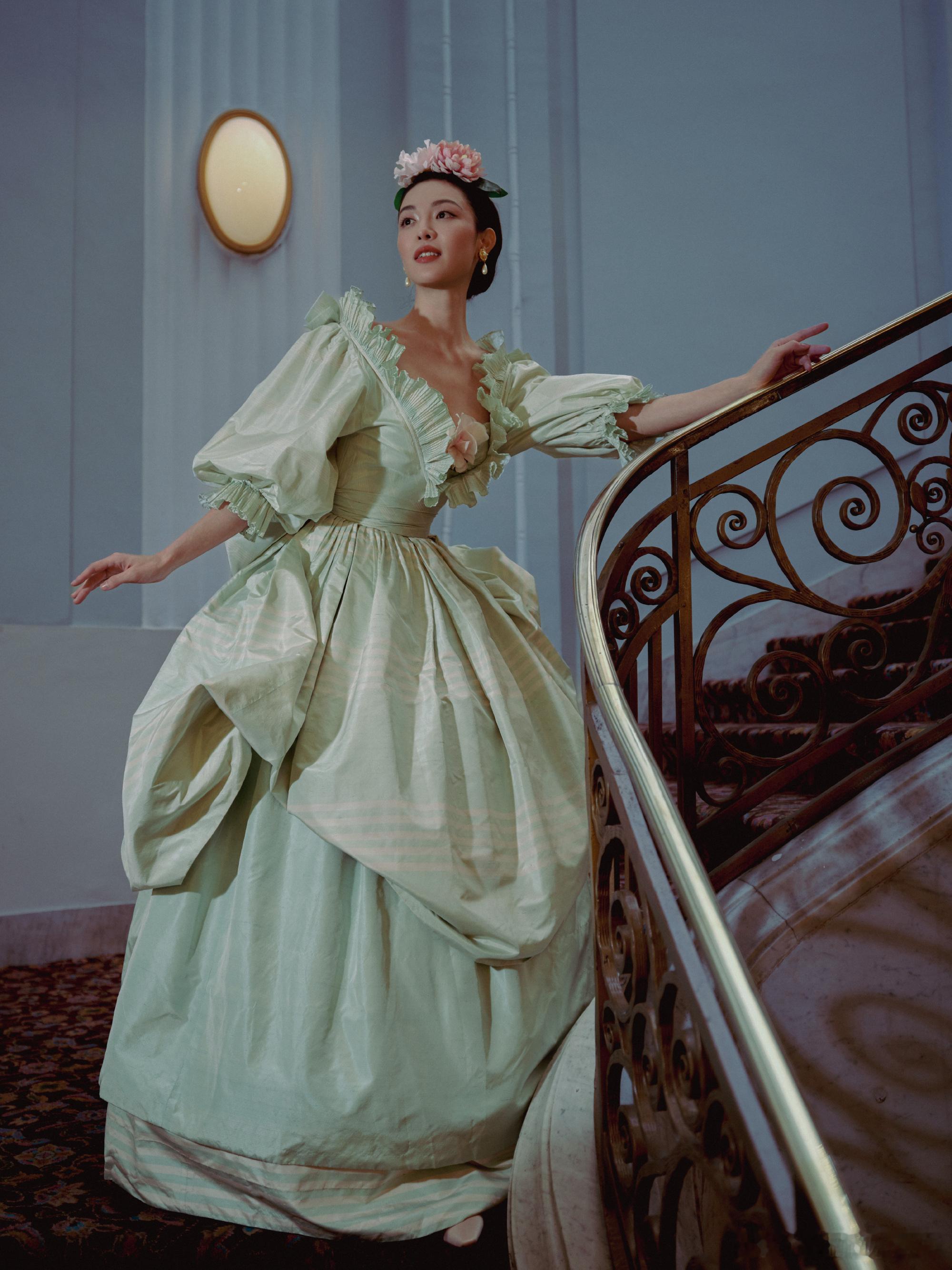 钟楚曦vogue的造型复刻的是NINA RICCI Spring 1987春夏高级定制系列,1987年的的古董高定裙!