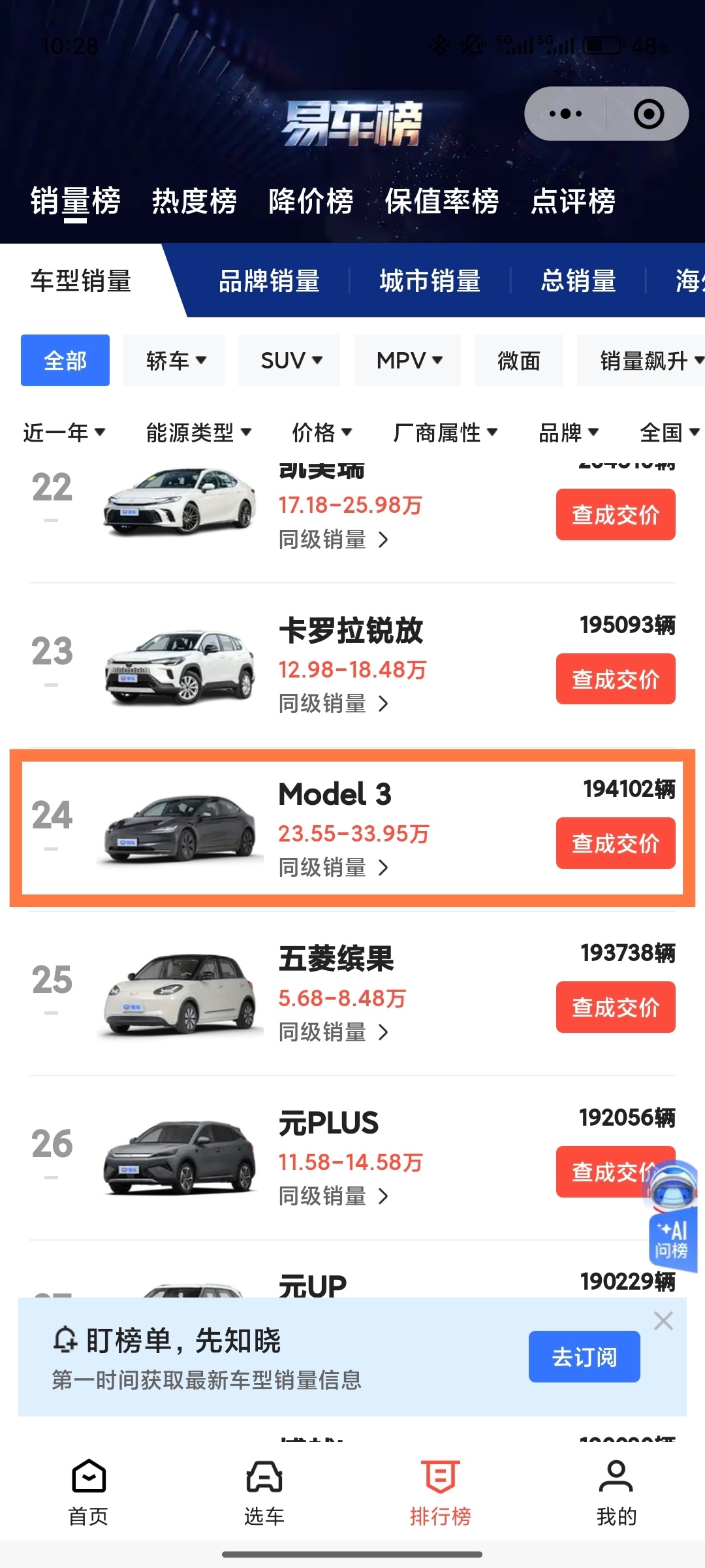 真的不容易,根据易车的数据(全部车型不分是否为新能源),小米SU7在近一年的数据中,销量已经超过了特斯拉Model3。