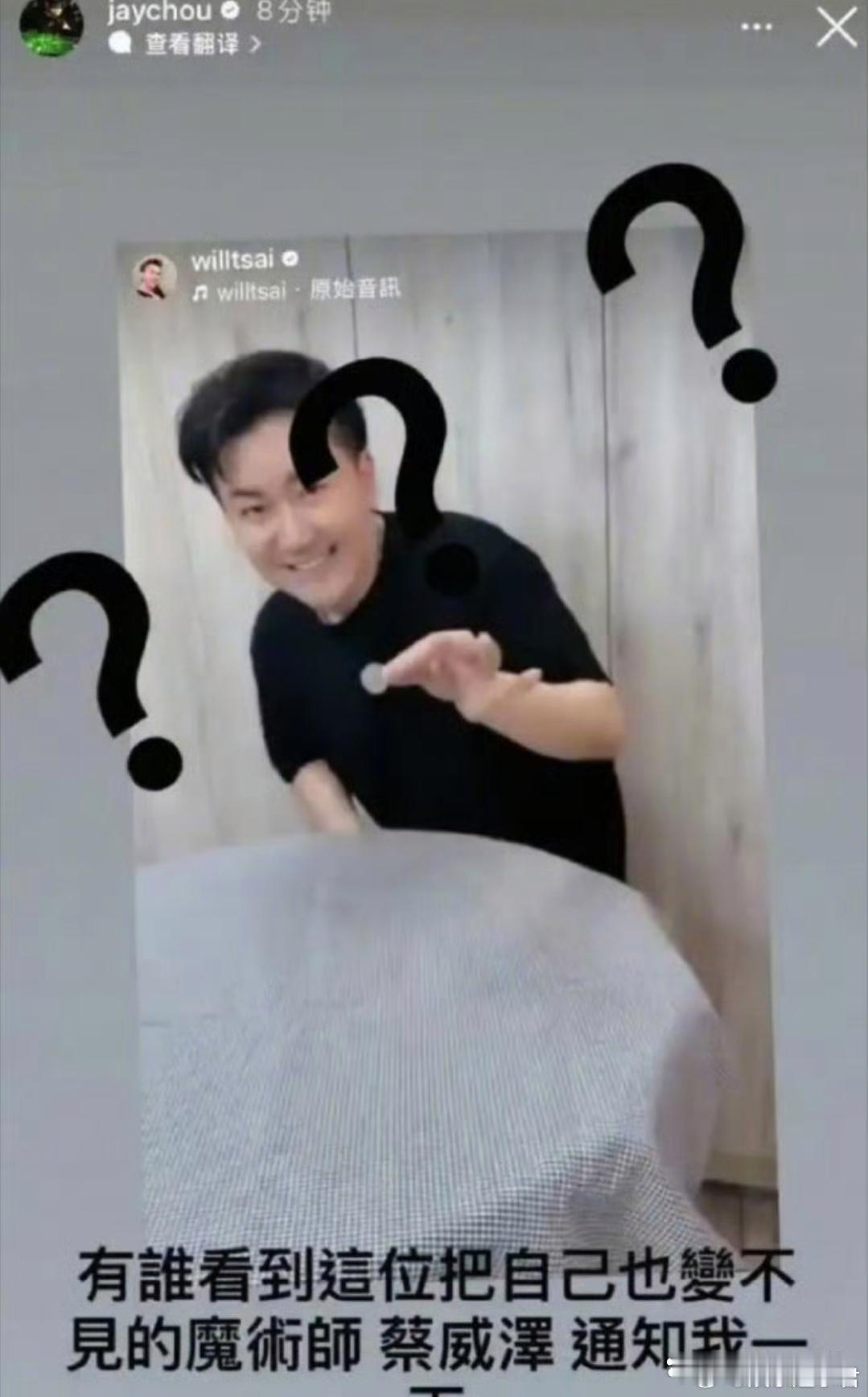 周杰伦公开喊话昔日好友近日,周杰伦在社交平台公开喊话魔术师好友蔡威泽,称对方毫无预警地消失,还说再不出现就完了,随后又删除。蔡威泽回应表示“真的很久没露面了”,并称会暂时离开社交网站一段时间。
