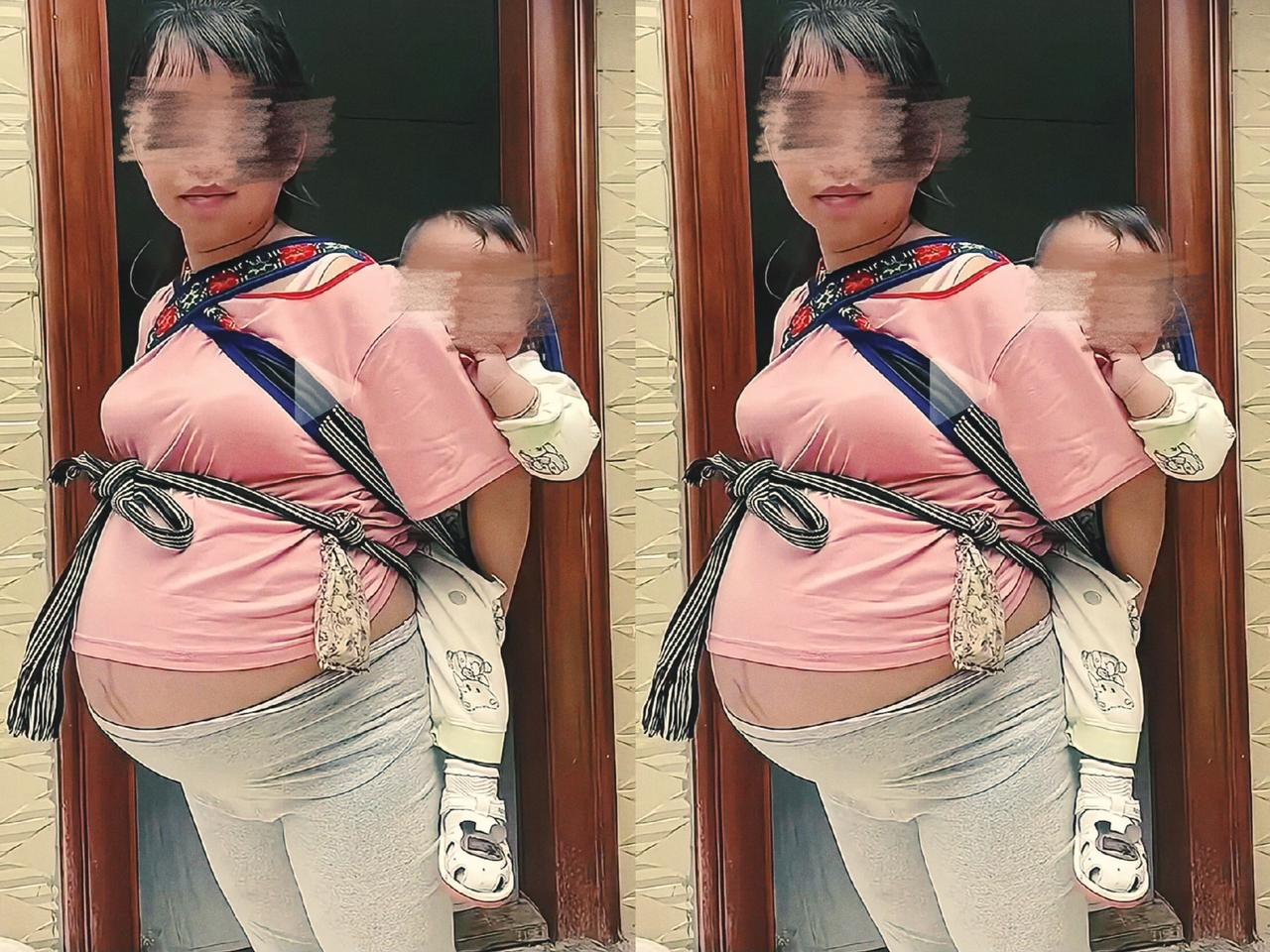 刷抖音刷到条视频, 越看越不是滋味:宝妈背上绑着9个多月的娃,肚子已经 隆得老高