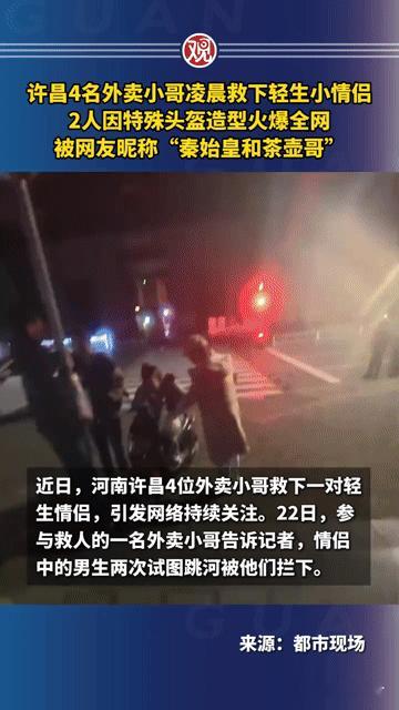 凌晨街头生死救援!许昌4名外卖小哥救下轻生情侣,特殊头盔成暖心细节 凌晨的许昌街头,一对小情侣陷入轻生危机,危急时刻,4名刚送完餐的外卖小哥冲了上来! 11月4日凌晨,这4名外卖小哥途经某地时,发现一对小情侣有轻生举动,他们立刻停车上前,一边耐心劝说安抚,一边合力阻止危险发生,最终成功将两人拉回安全地带。更让人暖心的是,其中2人因佩戴的特殊头盔(推测为带反光条、方便夜间行动的职业头盔),在昏暗环境中更易被注意到,也为快速靠近、稳定对方情绪提供了些许助力。 网友纷纷点赞:“外卖小哥不仅送三餐,还救性命!”“平凡岗位上的英雄,头盔下是滚烫的责任心。”这凌晨的一场救援,满是烟火气里的温暖。