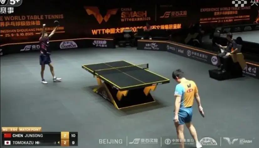 国乒男团选手“埃”落定! 初生牛犊不怕虎! WTT法国蒙彼利“埃”冠军赛,国乒男团选手最终“埃”落定! 国乒齐刷刷地小将出战! 向鹏(22岁) 陈垣宇(20岁) 温瑞博(18岁) 期待小将们,初生牛犊不怕虎,如同WTT中国北京大满贯赛陈俊菘一样,成为一匹大黑马杀出来! 陈俊菘(20岁),左手将,特殊打法。 北京大满贯 1/32决赛 3:2绝杀单打世界排名第四、日本一哥张本智和。 1/16决赛 3:2绝杀法国泊雷特 1/8决赛 3:2绝杀日本滨田一辉 1/4决赛 2:4不敌法国巴黎奥运会铜牌得主、欧锦赛男单冠军菲利克斯•勒布伦! 如图三,也让其惊出一身冷汗! 陈俊菘从资格赛打起,晋级八强! 从单打世界排名113位起,一下子跃升50以内! 陈俊菘是北京大满贯赛最大的黑马! 期待国乒男队飞出大黑马! 中国乒乓球队加油!