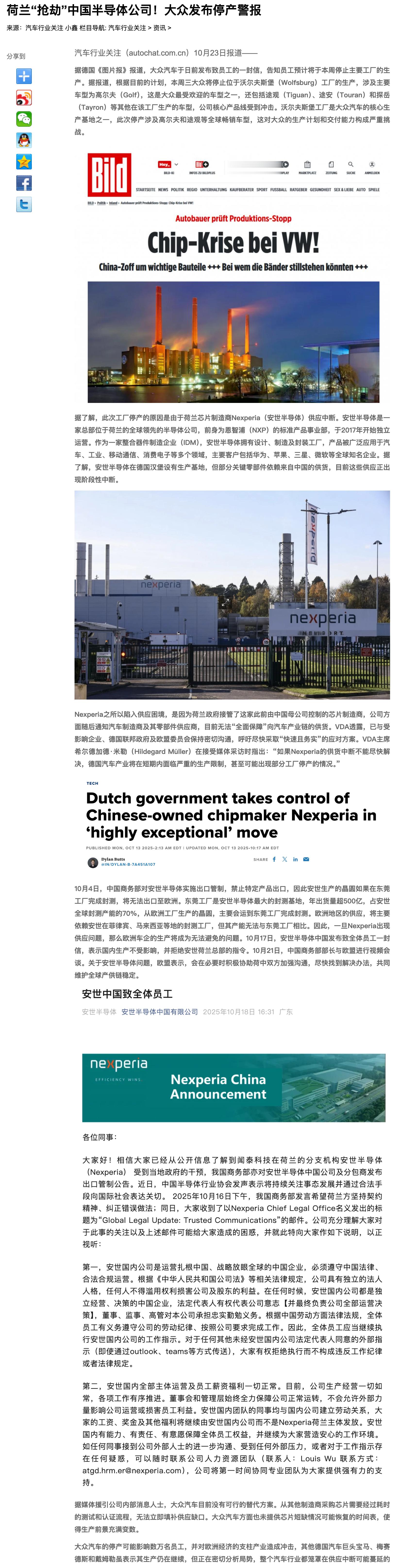 荷兰“抢劫”中国半导体公司!大众发布停产警报,将停止位于沃尔夫斯堡工厂的生产,主要车型为高尔夫(Golf),还包括途观(Tiguan)、途安(Touran)和探岳(Tayron)等其他在该工厂生产的车型。