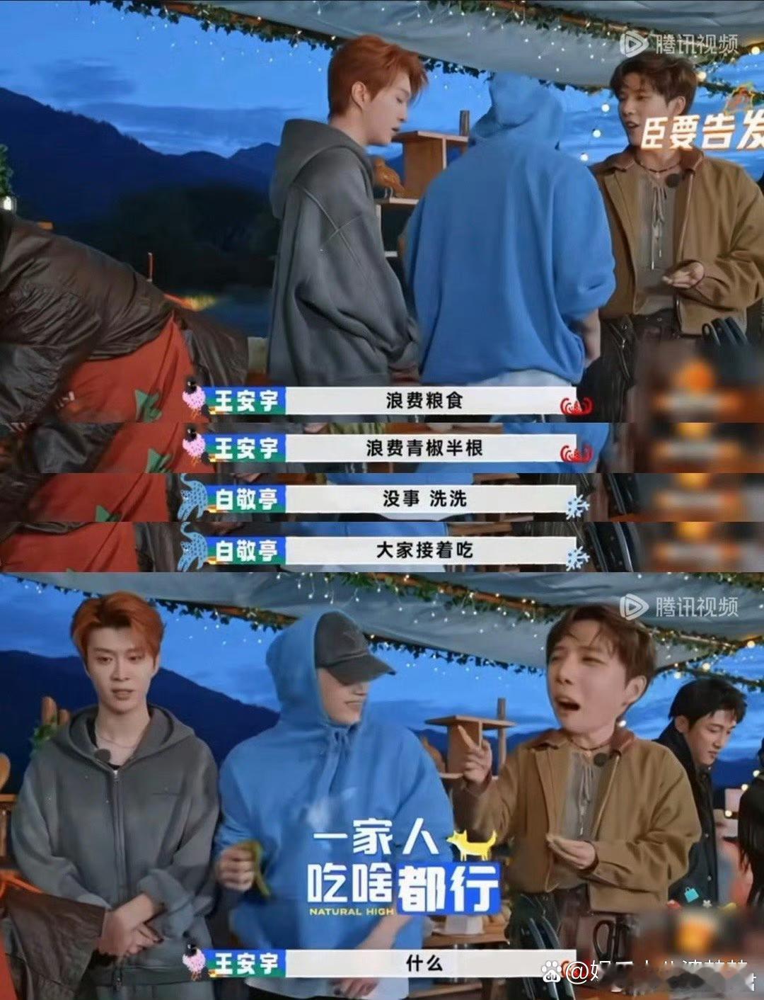王安宇这“碎嘴”真的太让人稀罕了,主打一个不仅看破还说破。白敬亭切青椒不小心掉了
