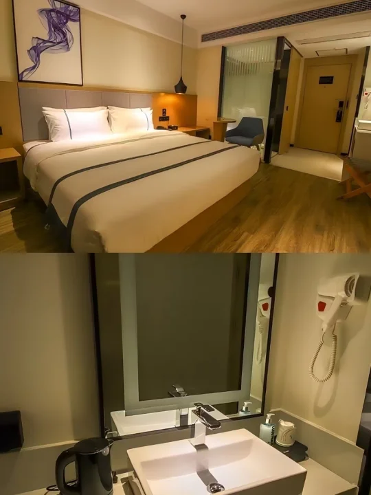 去黄冈随手订的酒店,意外有点惊喜,从进门的香氛就开始上头~🌿 大堂是那种低调有品的调调,随手一拍都很出片。走廊安静得像艺术画廊,房间干净到反光,浴室死角都发光!✨ 前台小姐姐笑容超甜,3分钟搞定入住!晚上下楼碰到还会打招呼…这种小细节我真的会哭😭 . 他家的床垫是那种躺下会自动“哇哦”的支撑感!羽绒被轻得像云朵,裸睡级纯棉床单,我直接睡到自然醒…第二天精神满满逛遗爱湖!💤 姐妹们信我,这家可以直接无脑冲~