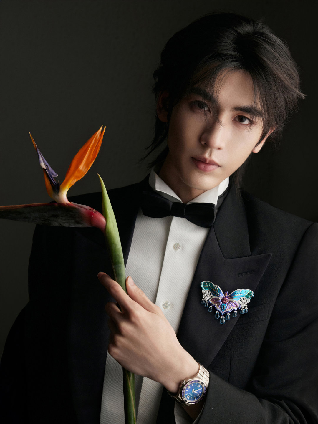 张凌赫身着GUCCI by Demna 2026春夏系列黑色西服套装,点缀Chopard Red Carpet高级珠宝系列胸针及腕表,低调内敛中难掩矜贵气质,今天是帅得很克制的东方贵公子~
