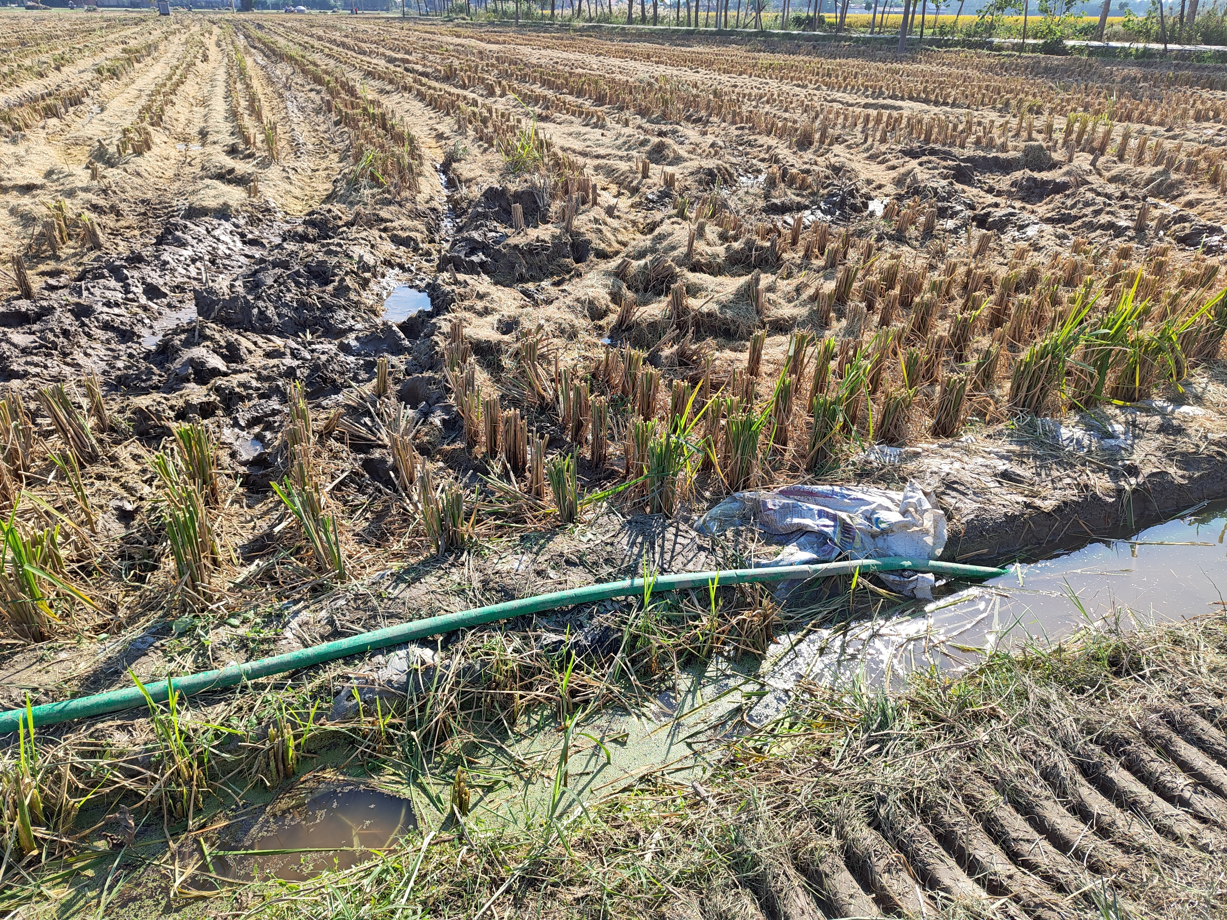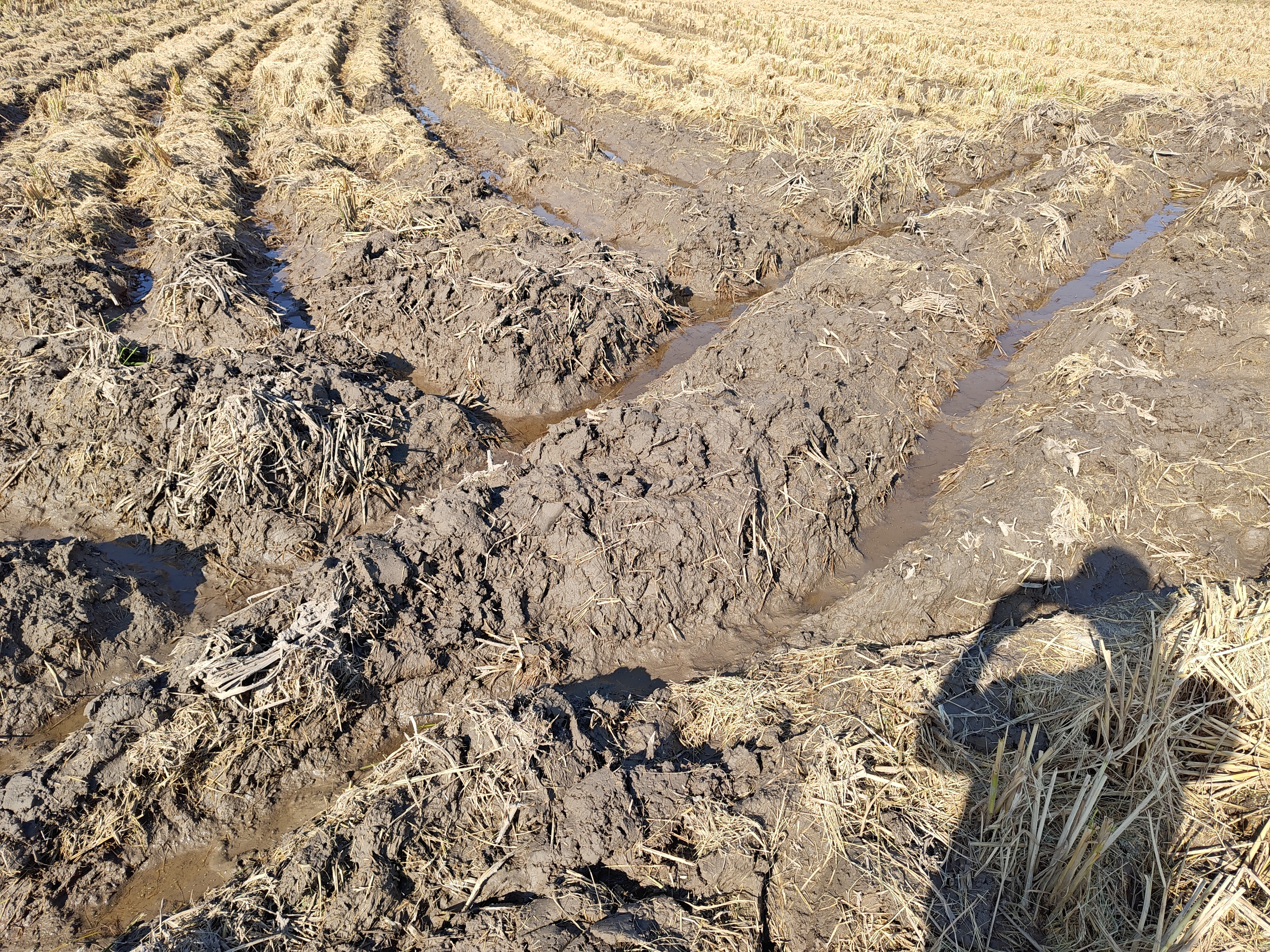 这样就导致田里积水不易排出,我家水稻田里成泥窝了😭