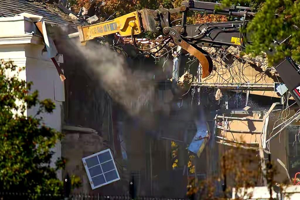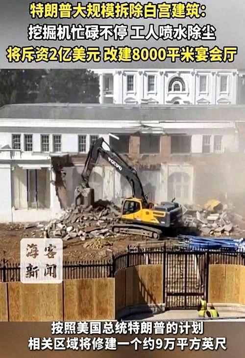 白宫东边那几栋老房子,说拆就拆了。 机器轰隆,砖瓦飞溅。 你猜咋的?2.5亿