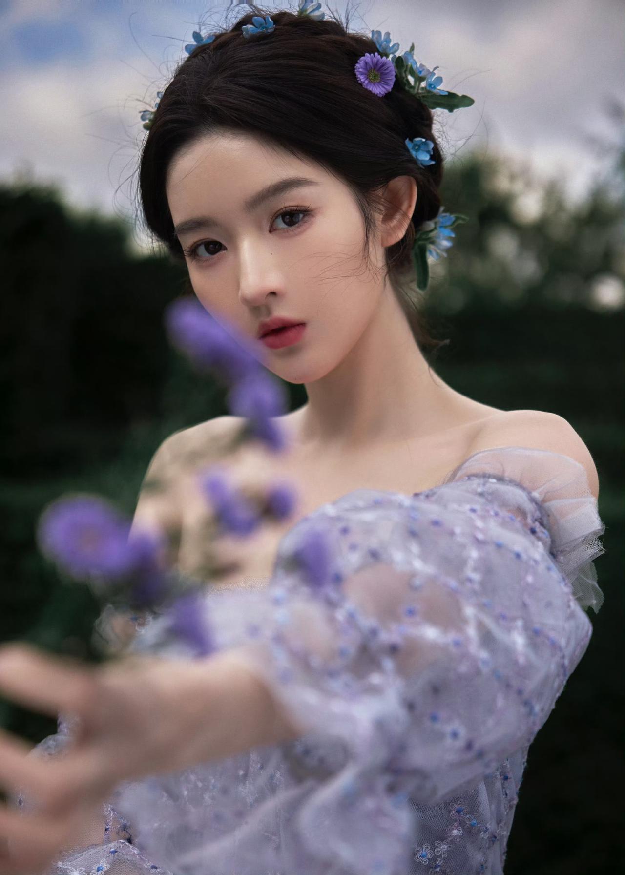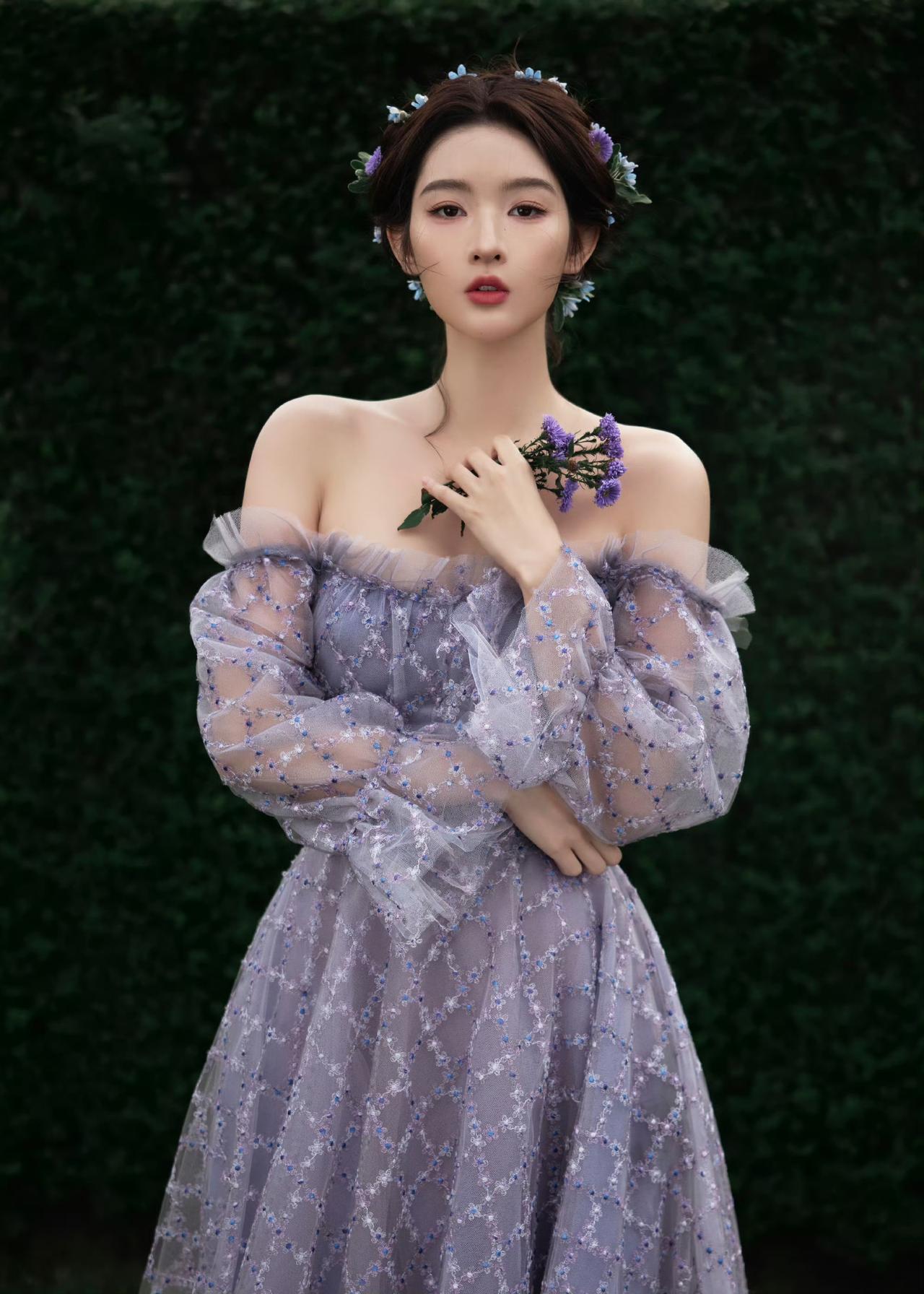 王玉雯VOGUE盛典造型惊艳亮相。 于缥缈薄雾间赴一场浪漫之约。 她仿若神女降临凡尘, 以冰肌玉骨绘就一场紫色绮梦。 在幻梦之中自在前行。